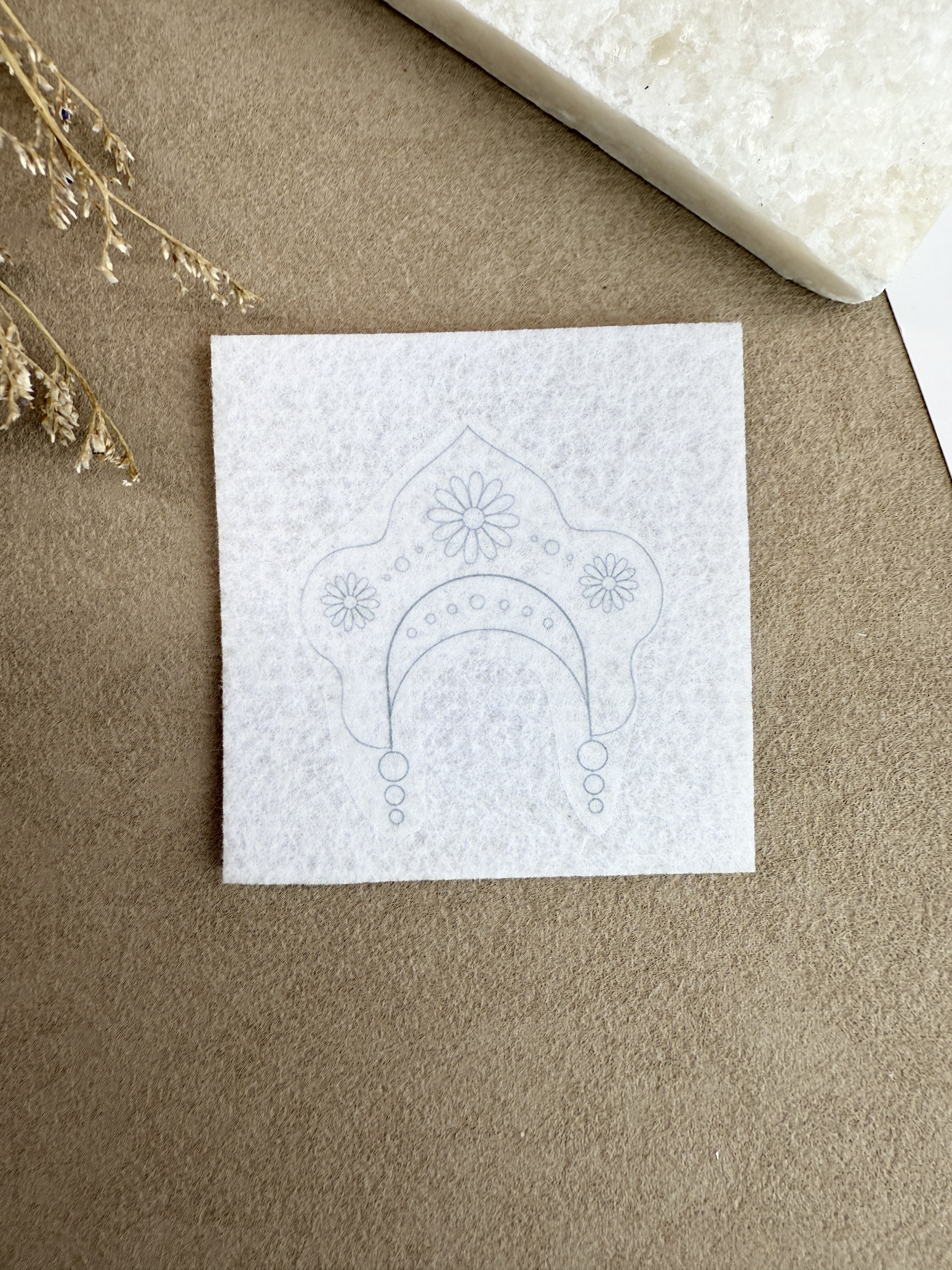 Шаблон "Кокошник" для вышивки бисером или гладью матрешки. Выполнен на корейском жестком фетре