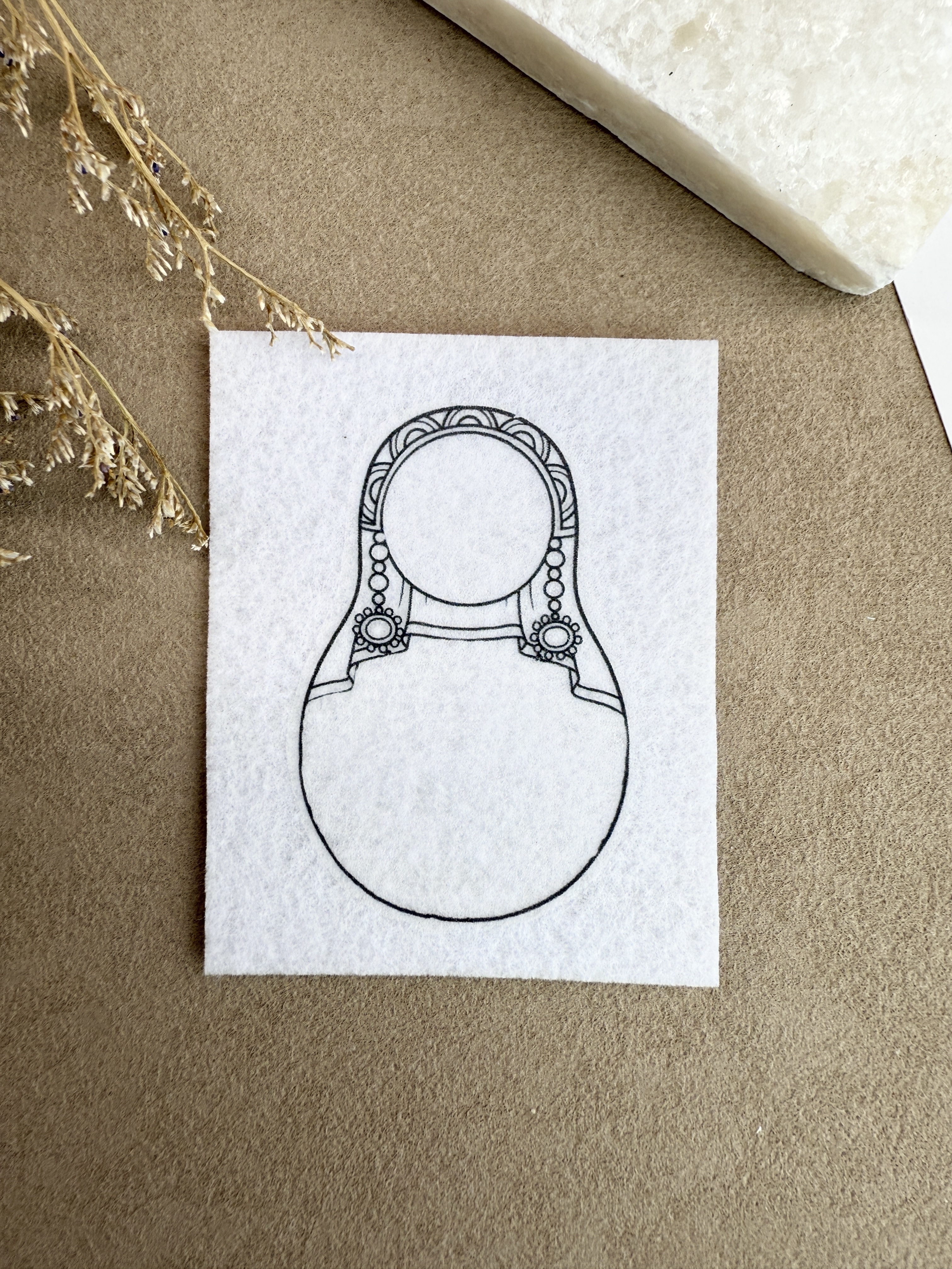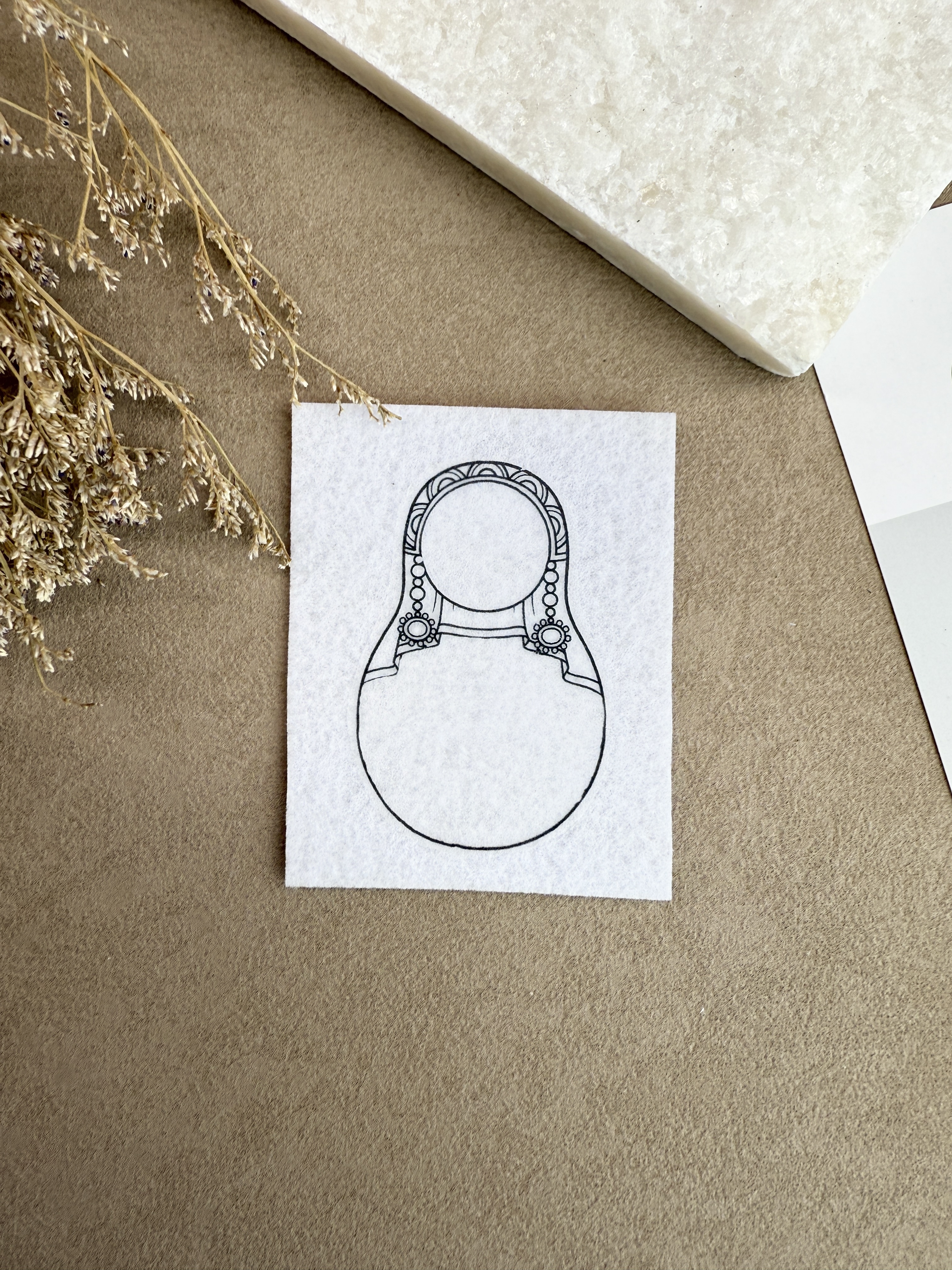 Шаблон для вышивки бисером или гладью матрешки. Выполнен на корейском жестком фетре