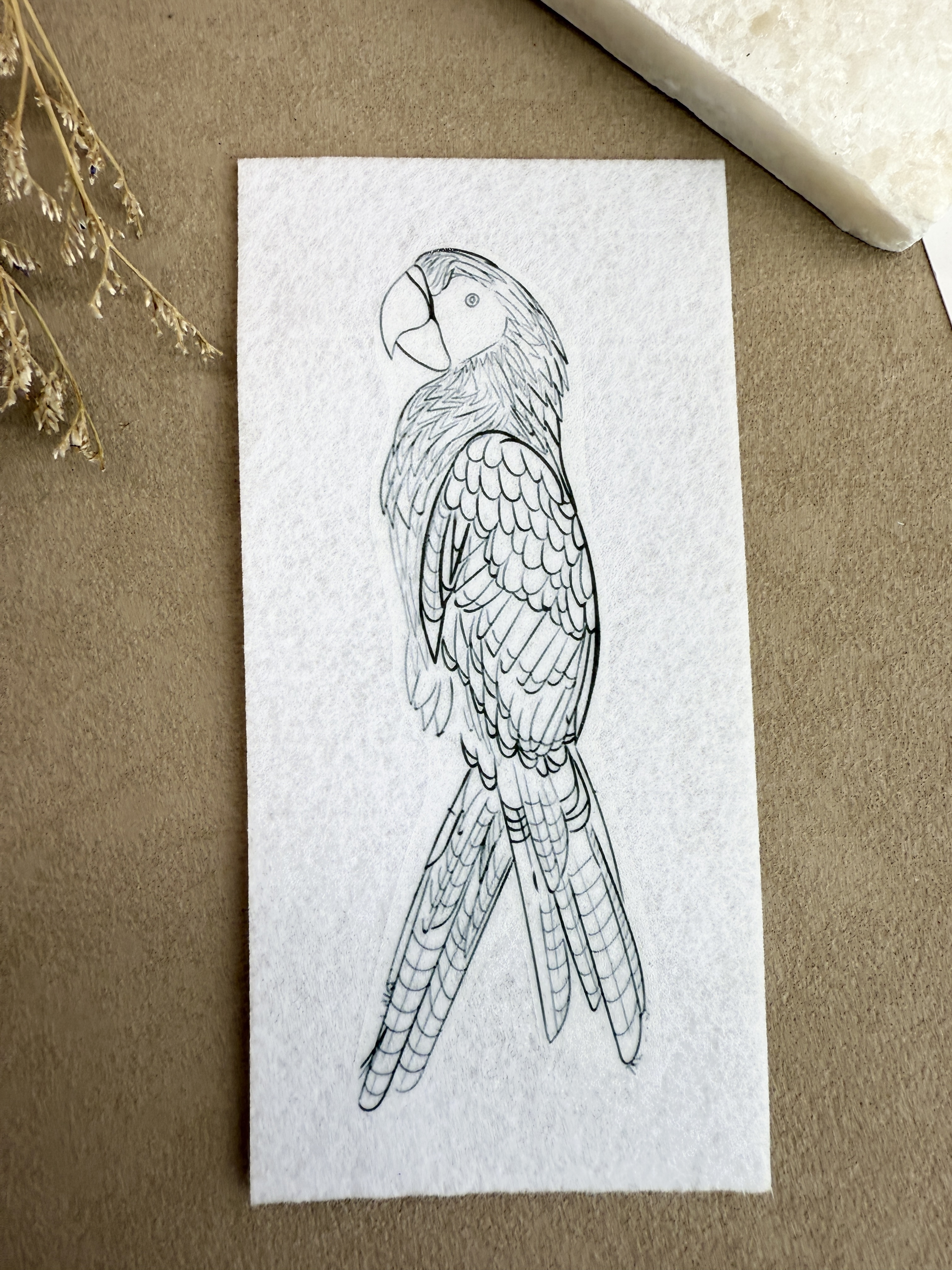 Шаблон попугая для вышивки бисером или гладью. Выполнен на корейском жестком фетре
