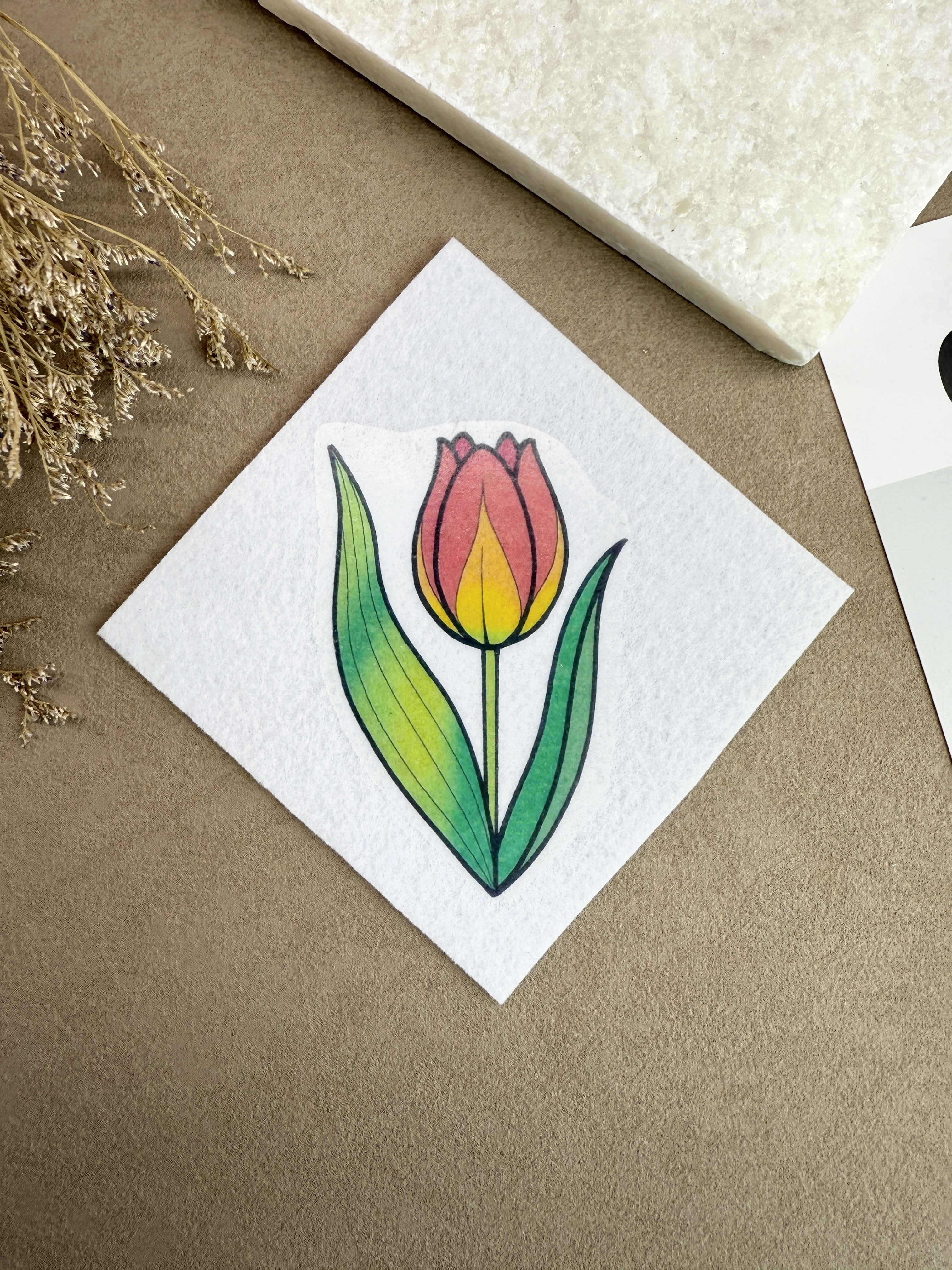 Шаблон тюльпана для вышивки бисером или гладью. Выполнен на корейском жестком фетре