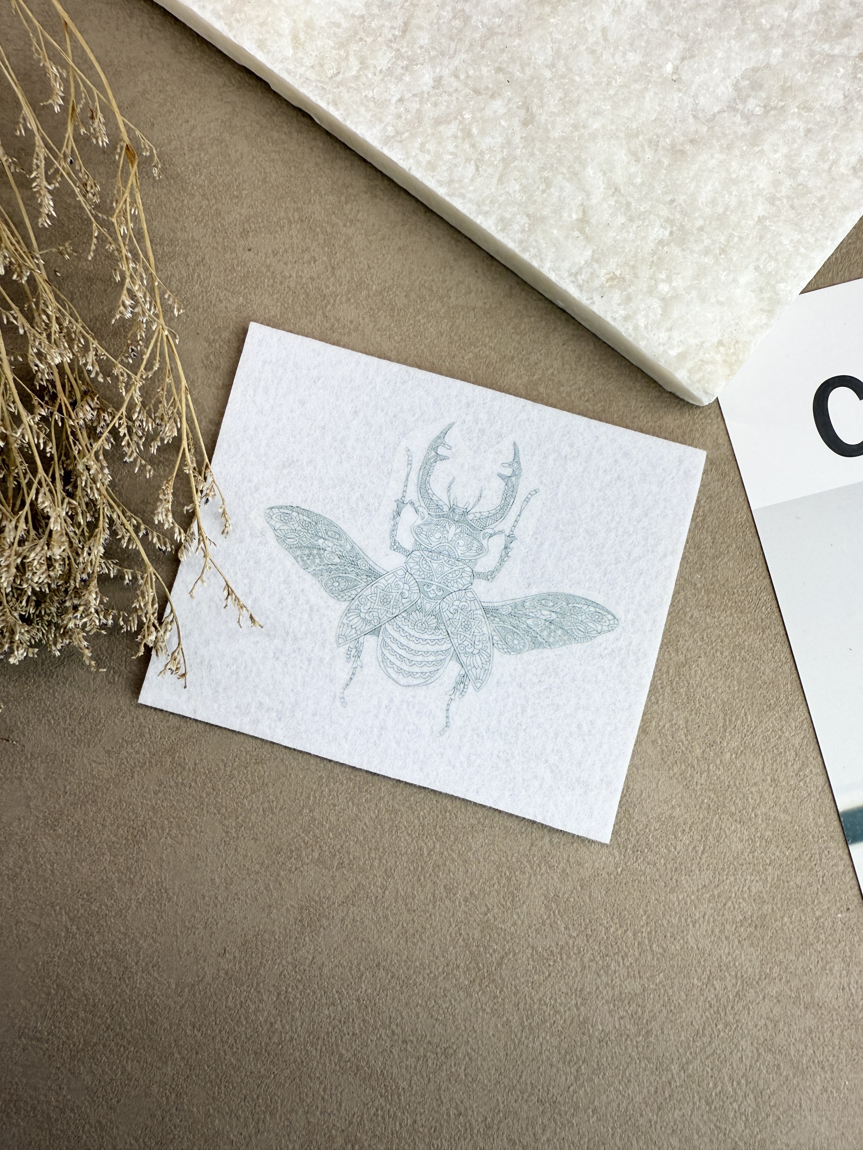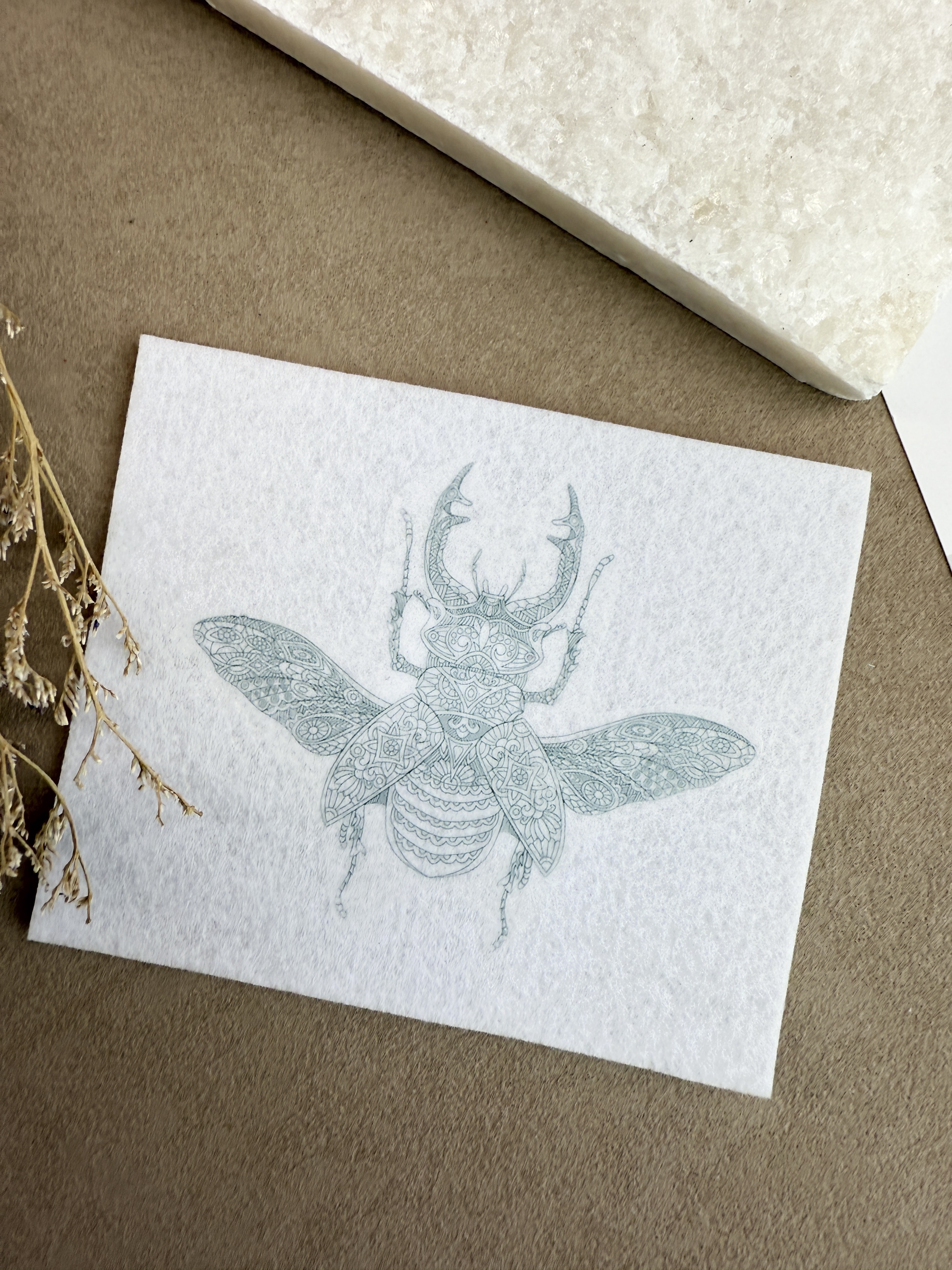 Шаблон жука для вышивки бисером или гладью. Выполнен на корейском жестком фетре. Сочетается с рогами жука оленя нашего производства.