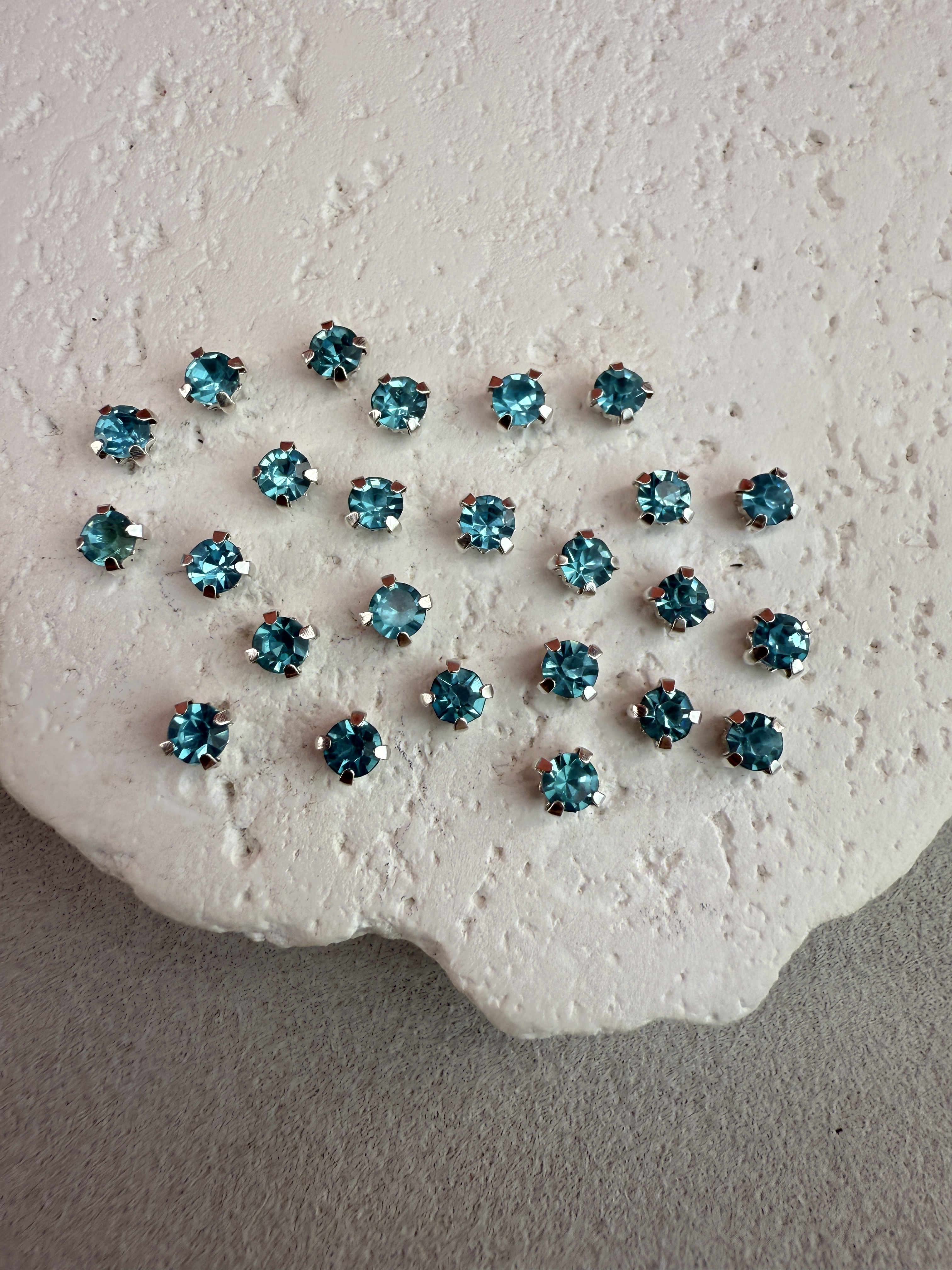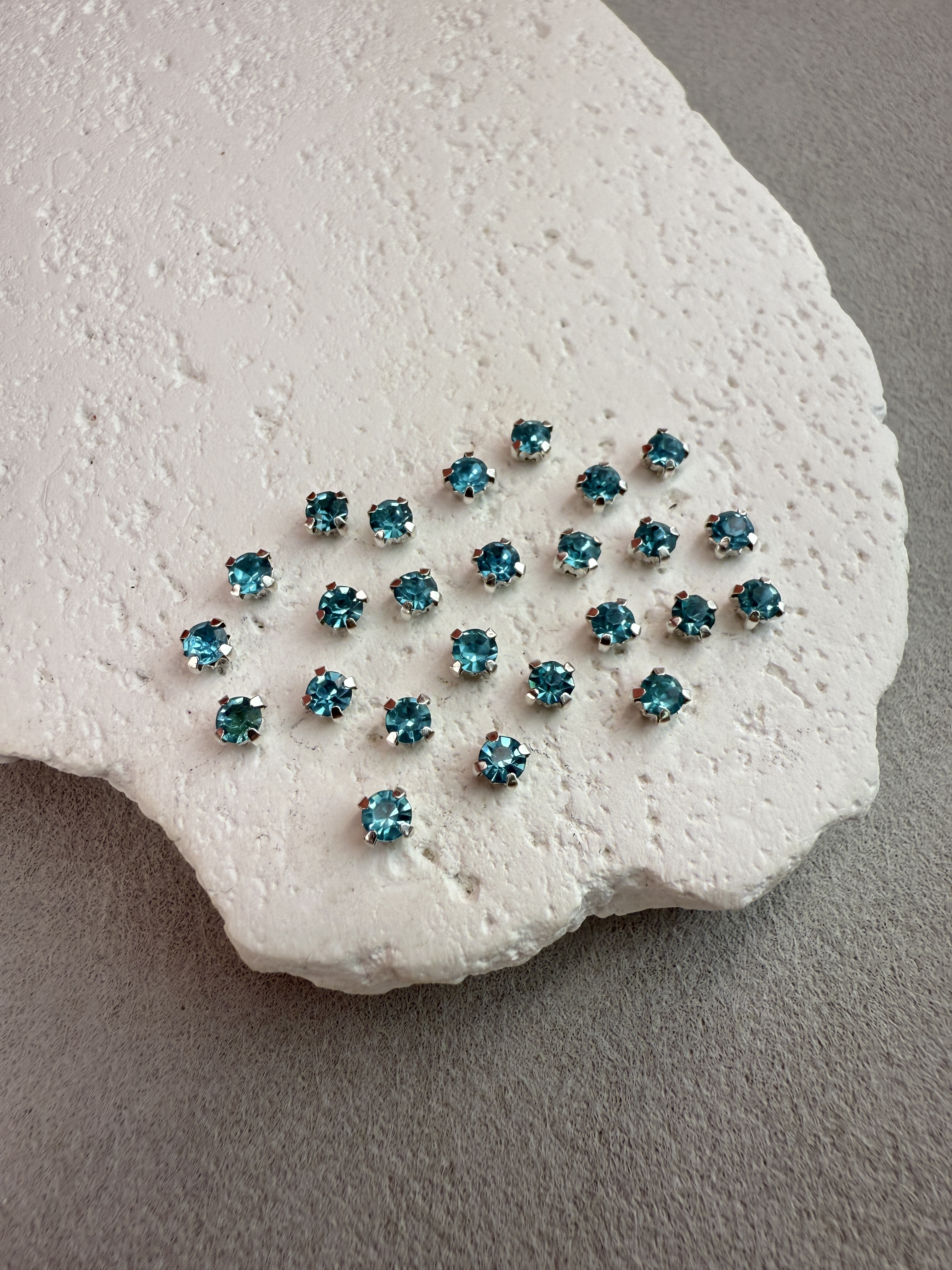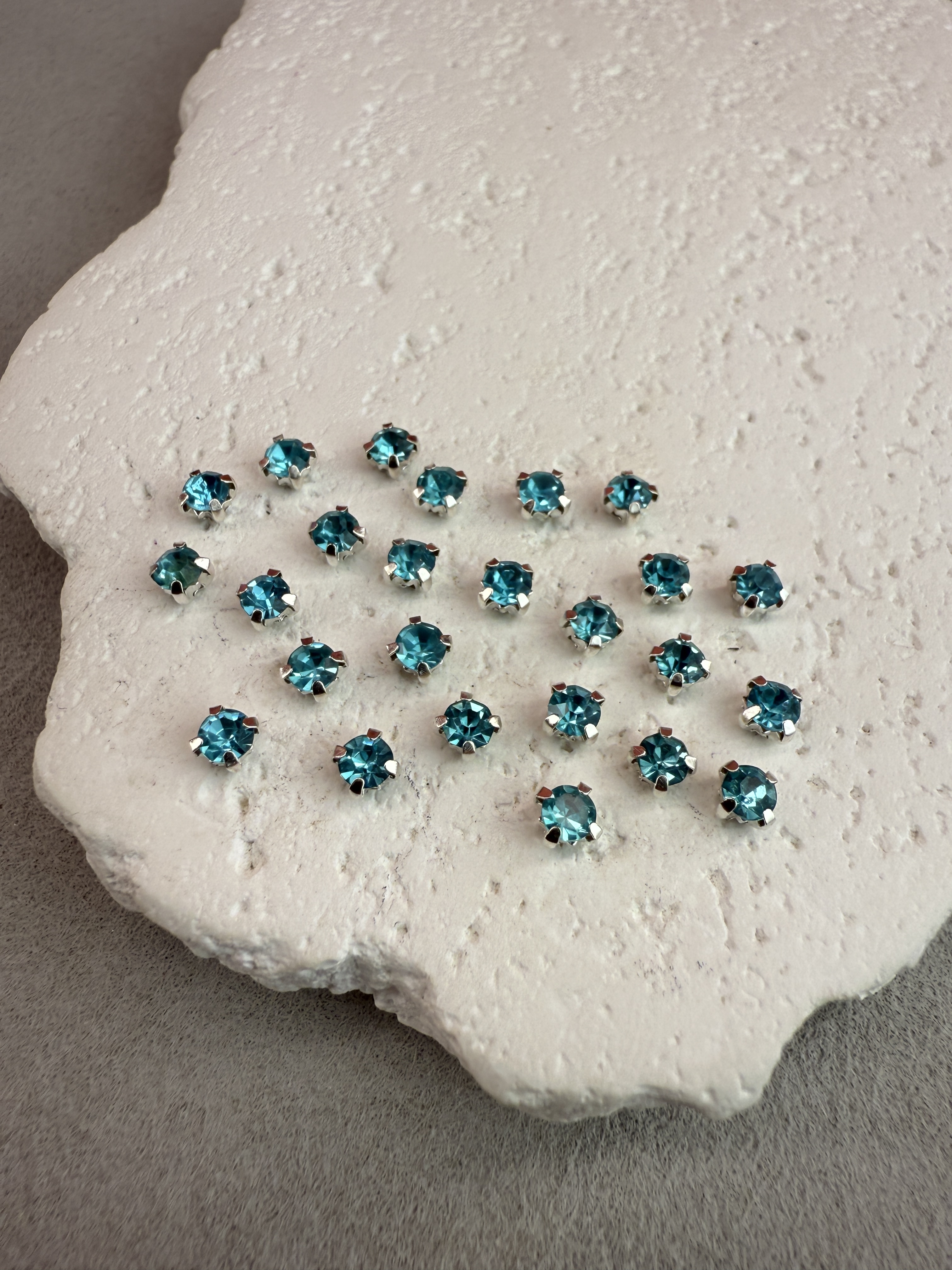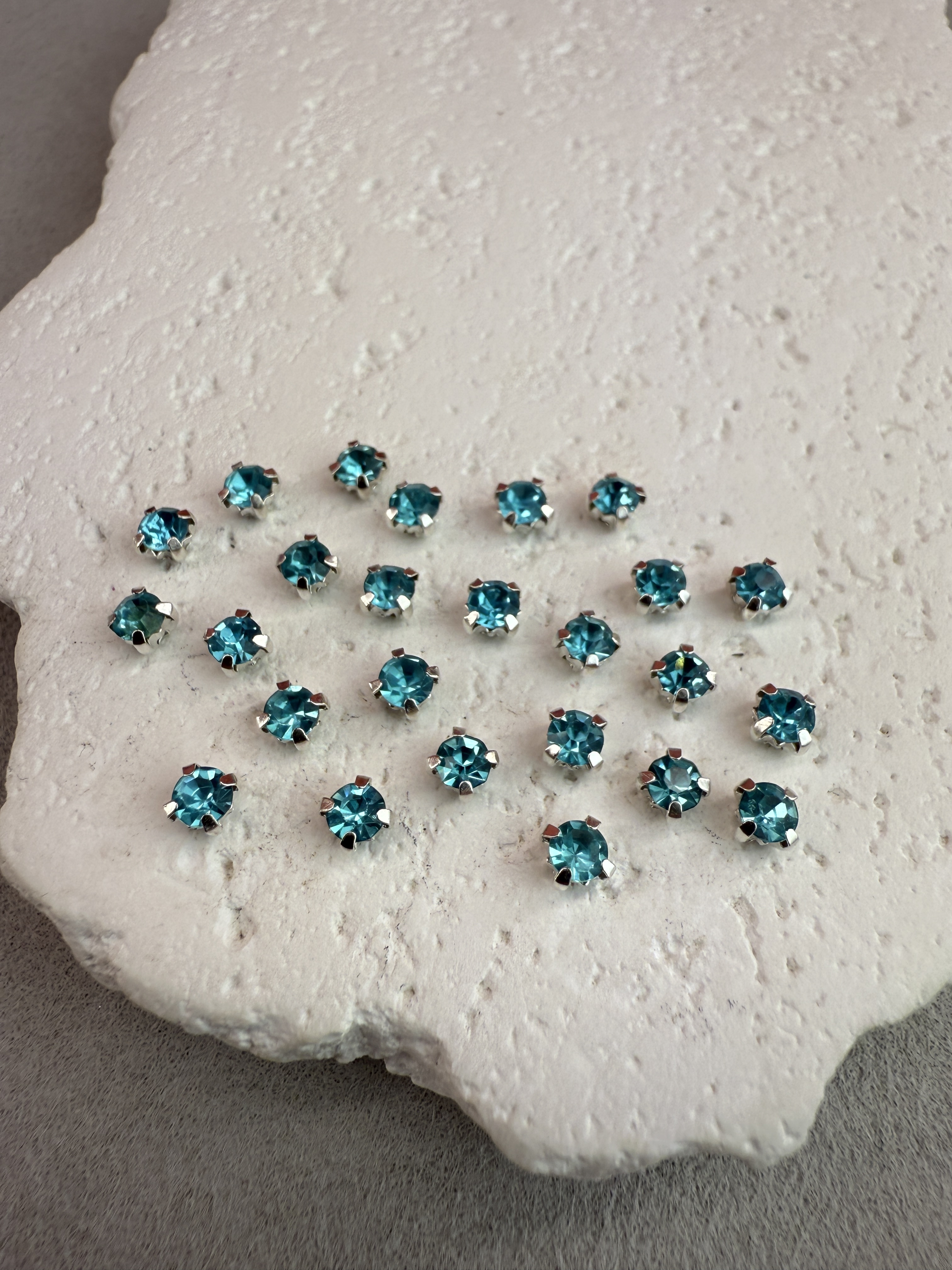 Шатоны 4 мм, Аквамарин в серебре, 25 шт