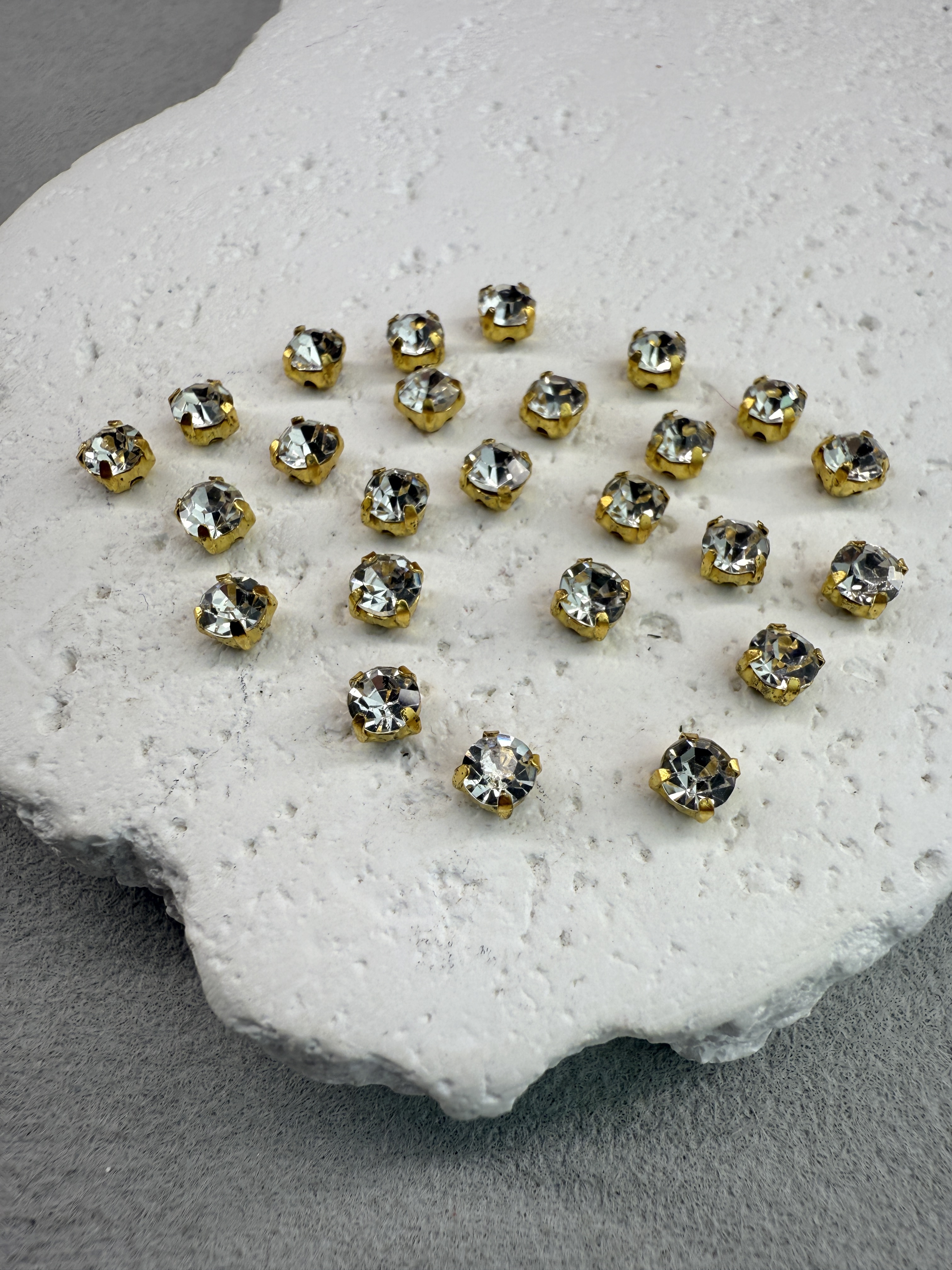 Стеклянные пришивные стразы в цапах 4 мм круглой формы(chatone).