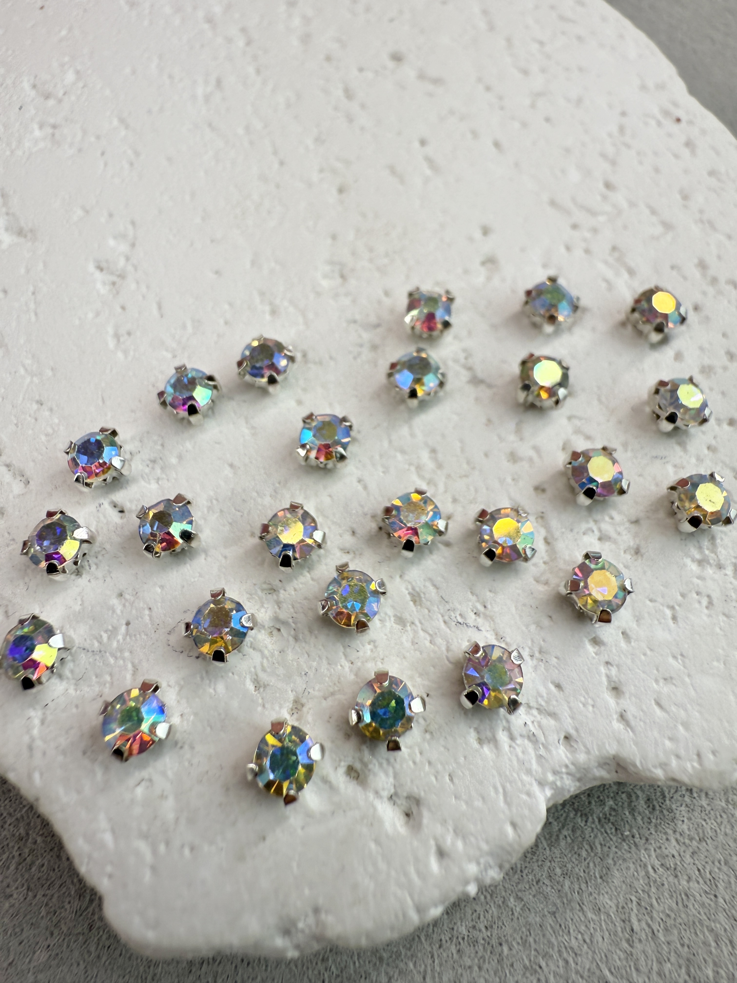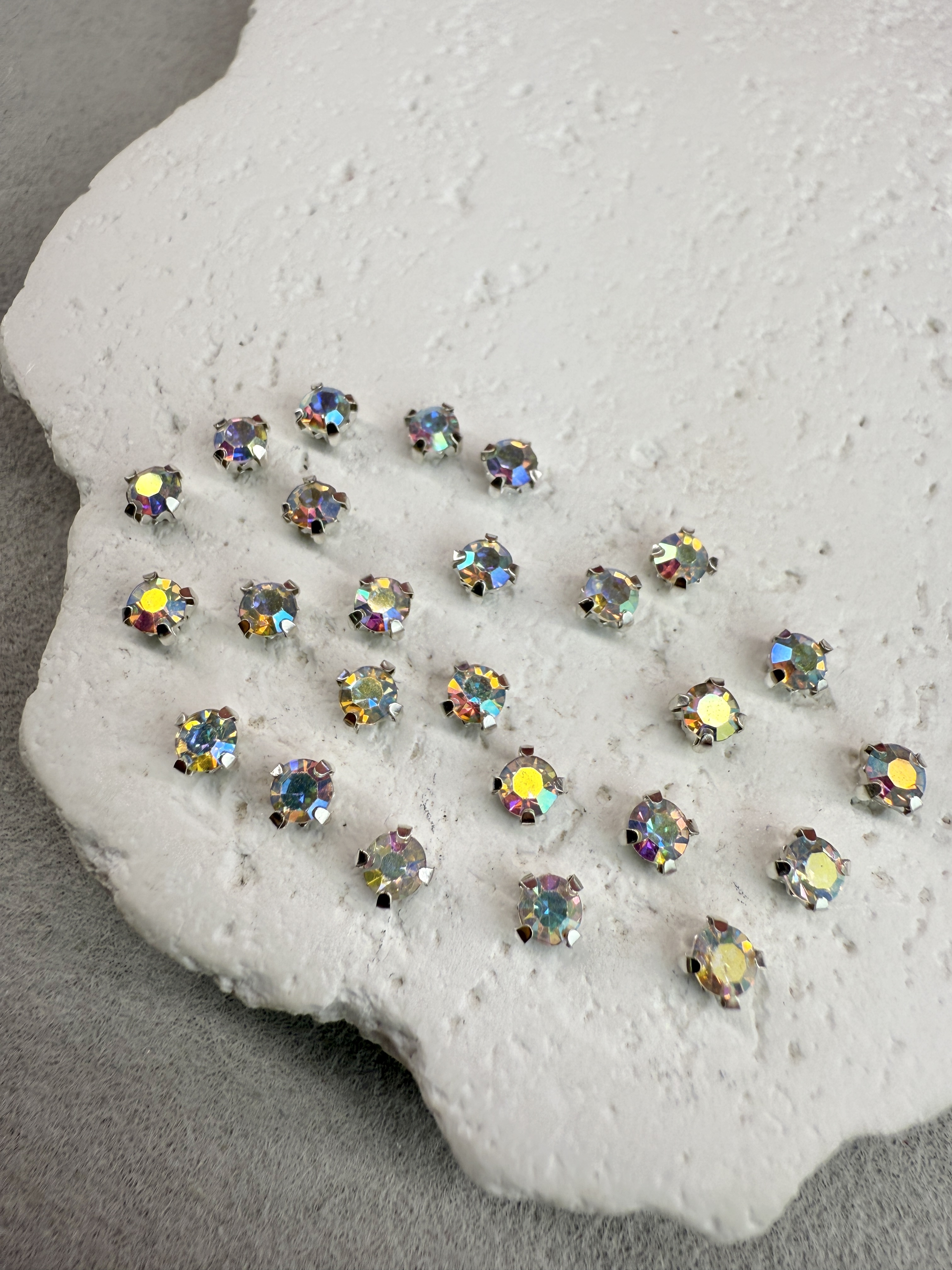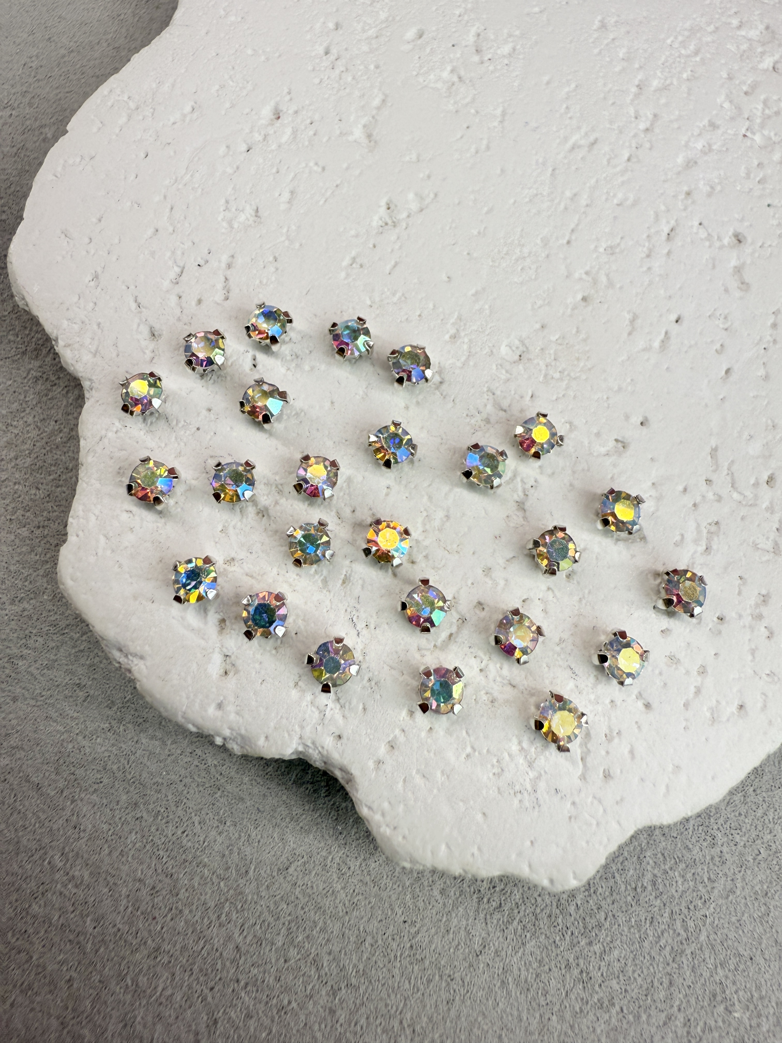 Стеклянные пришивные стразы в цапах 4 мм круглой формы (chatone).