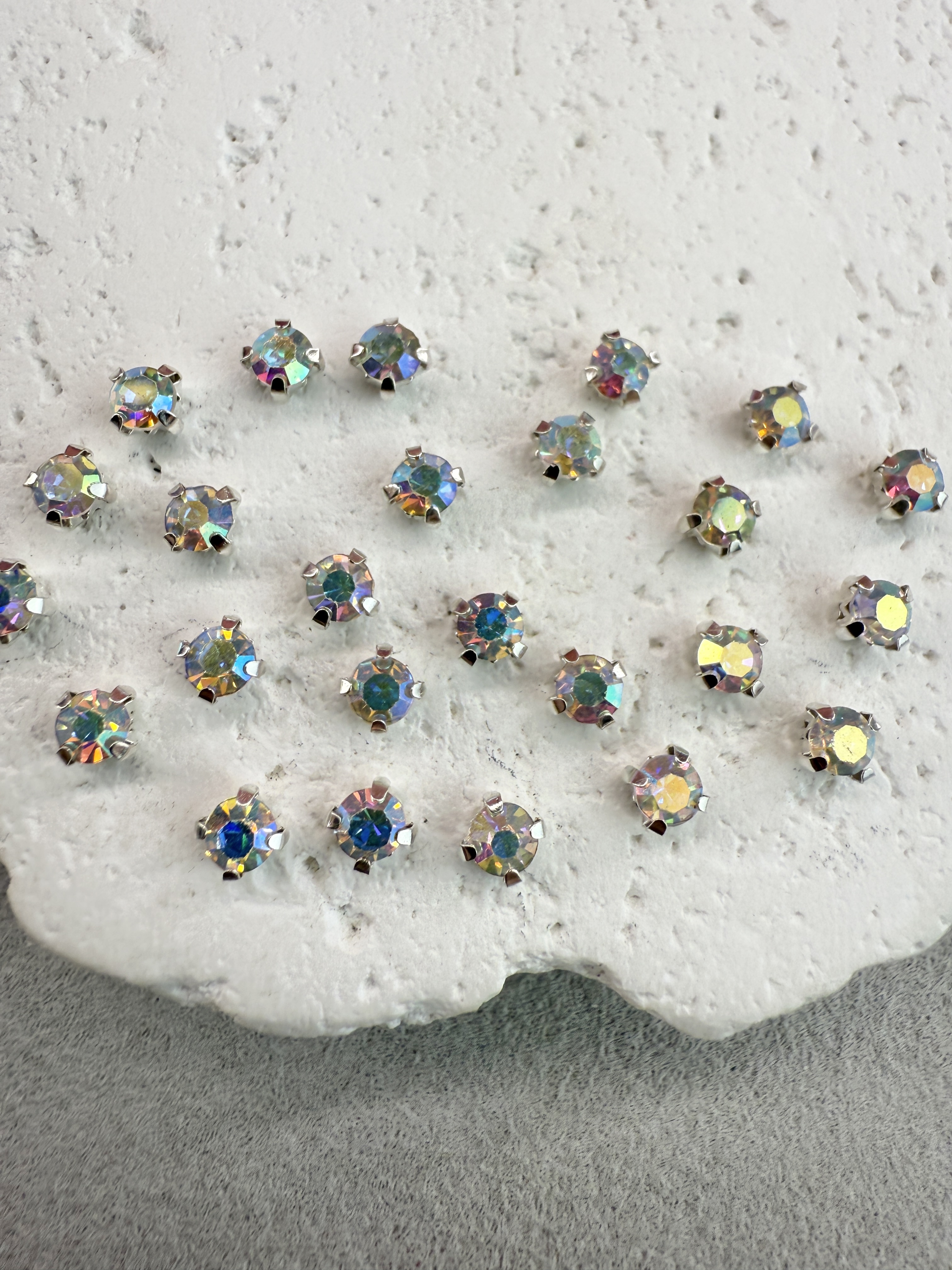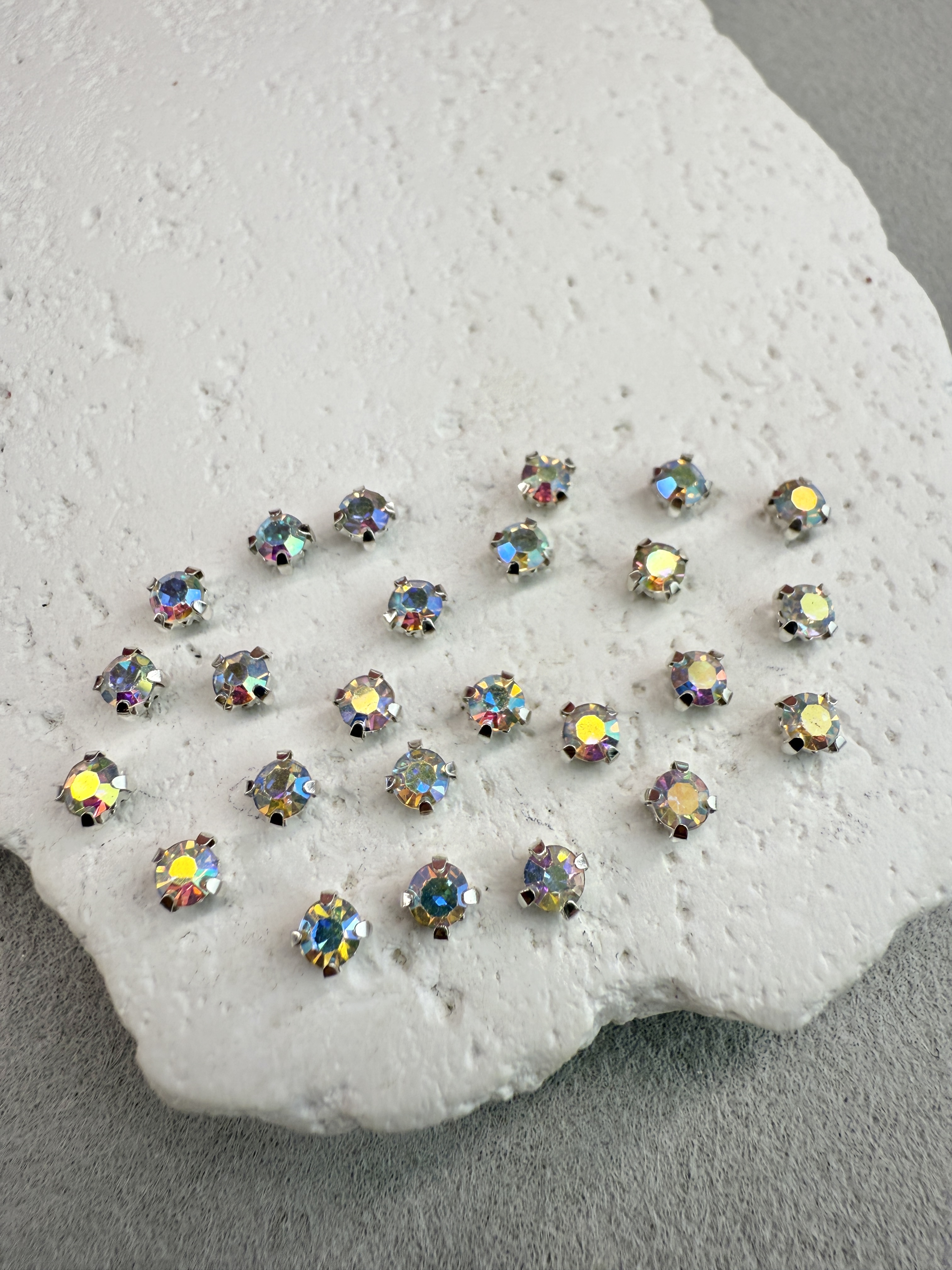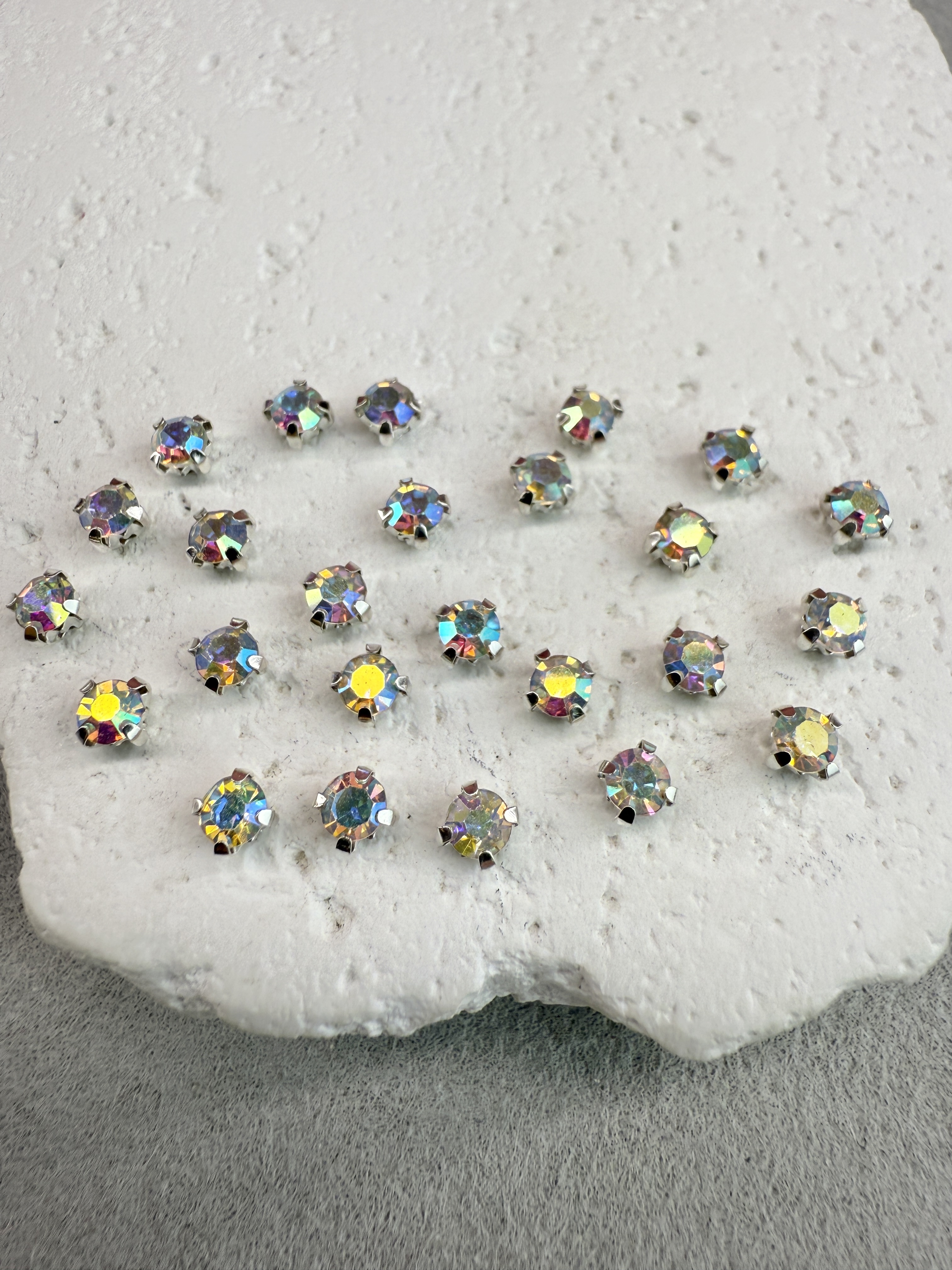 Стеклянные пришивные стразы в цапах 4 мм круглой формы (chatone).