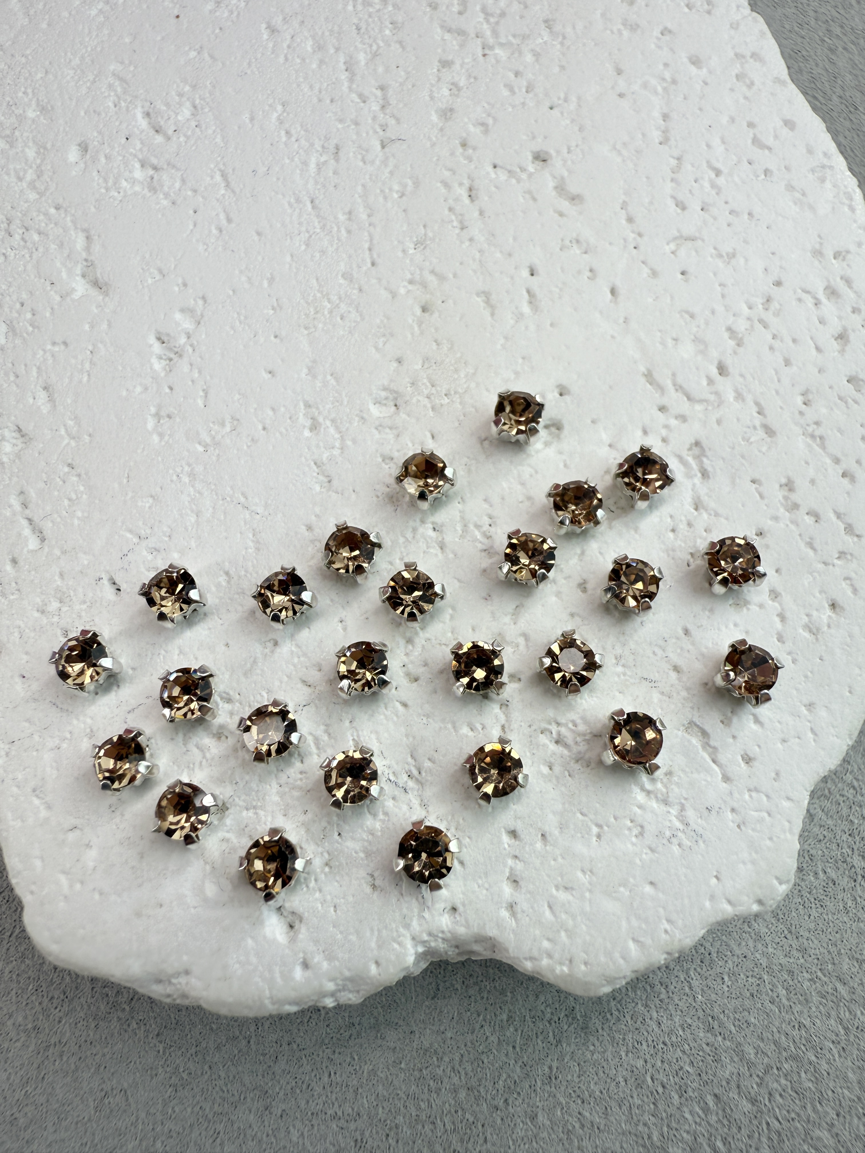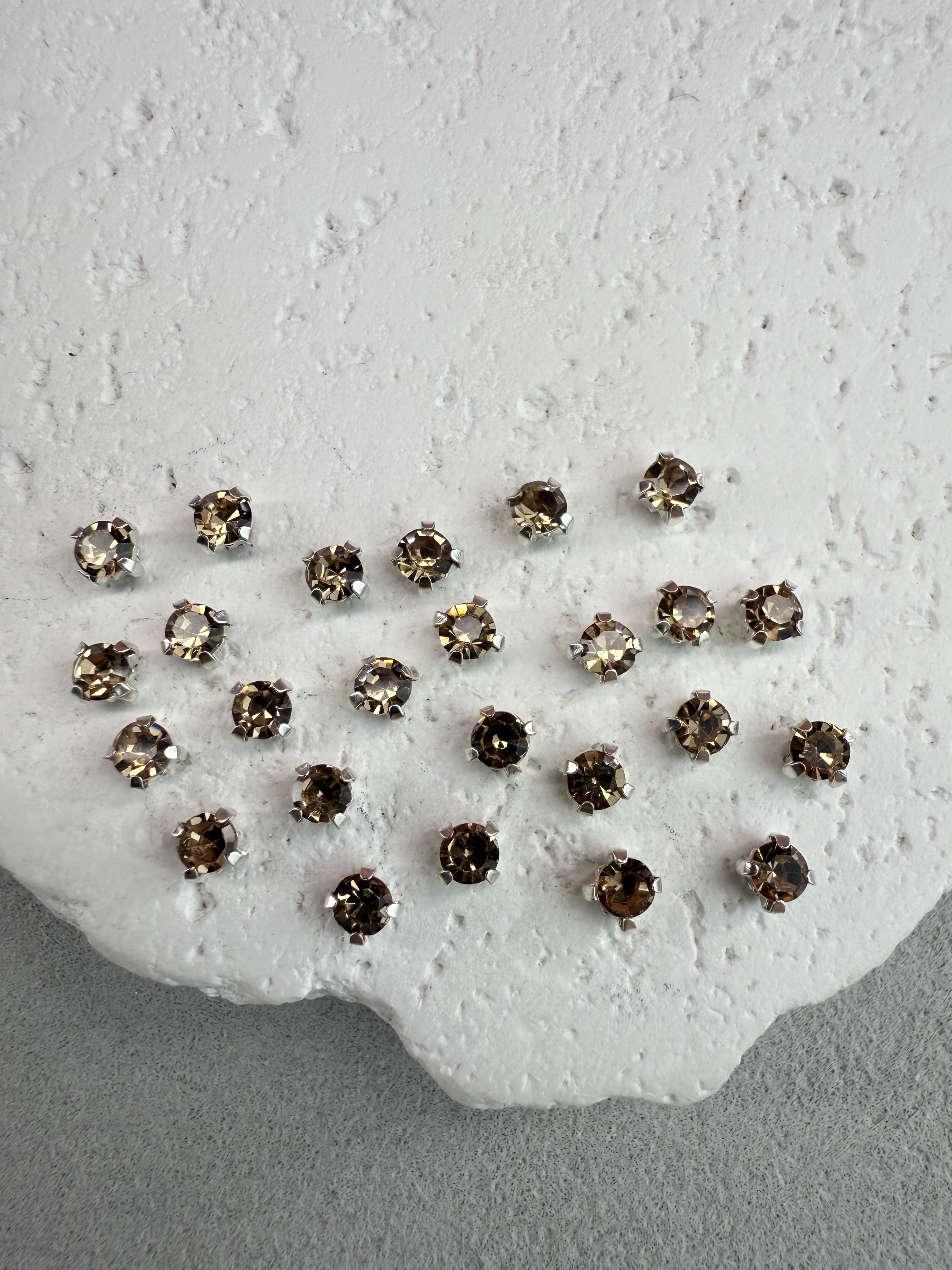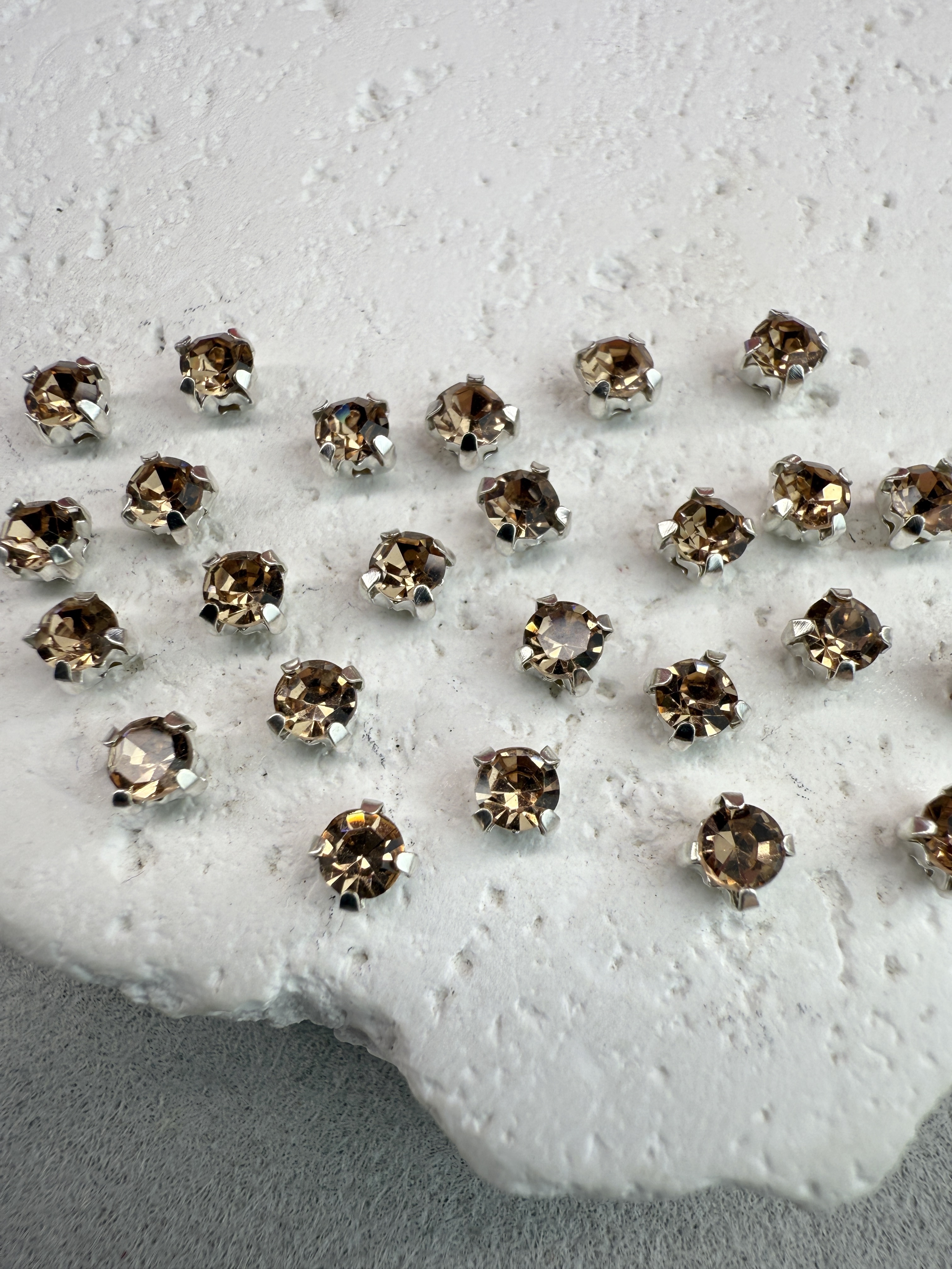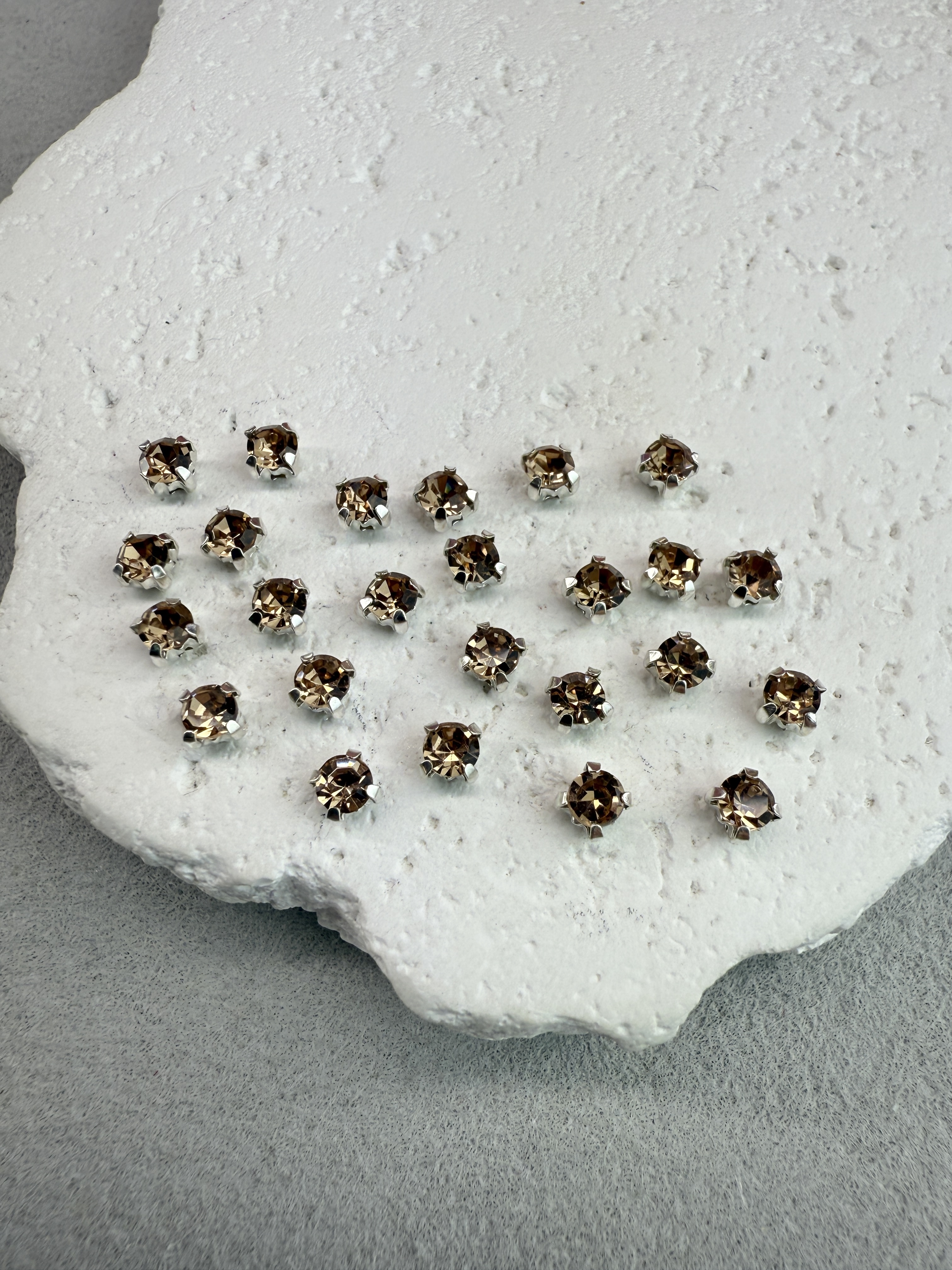 Стеклянные пришивные стразы в цапах 4 мм круглой формы (chatone).