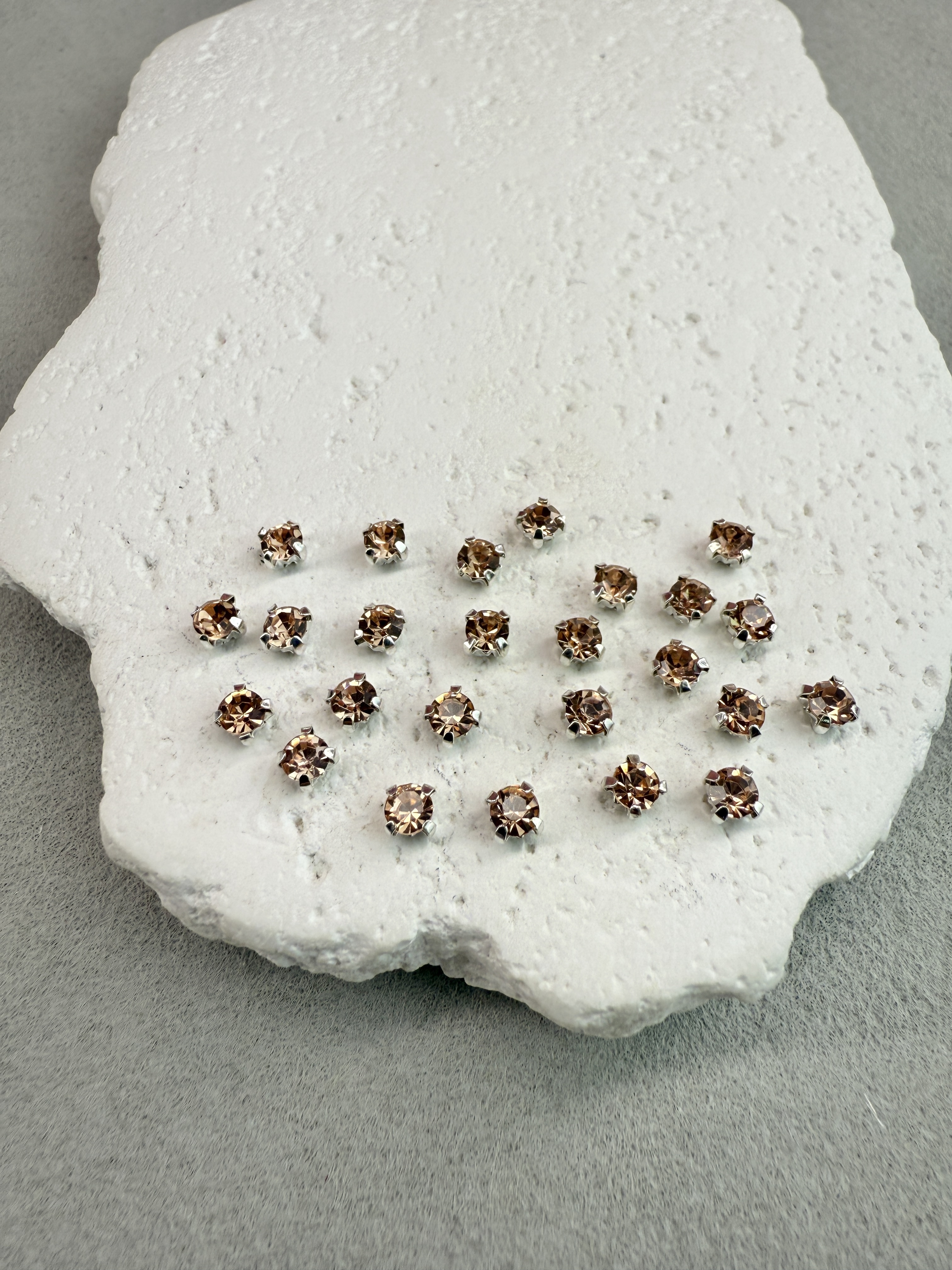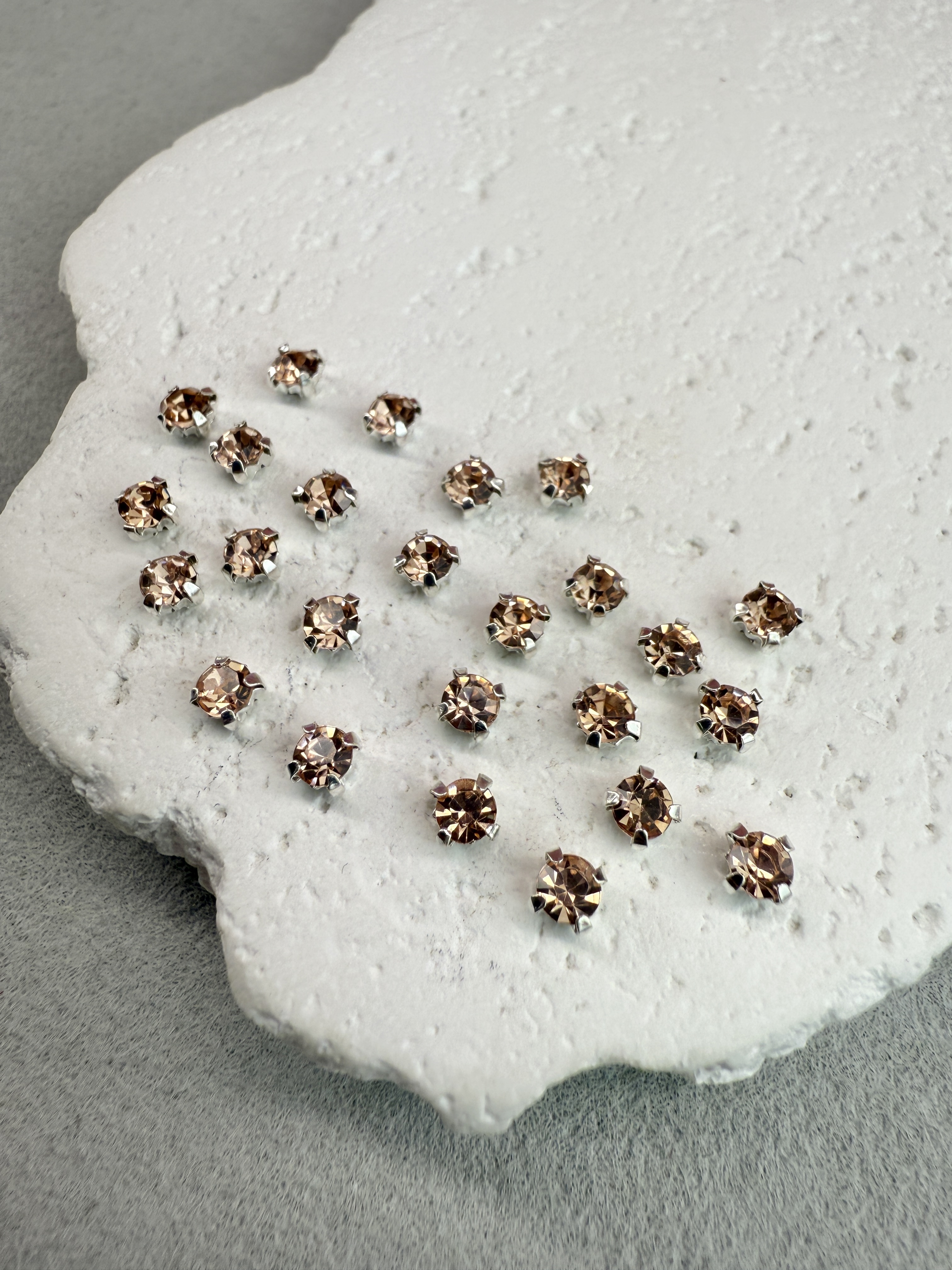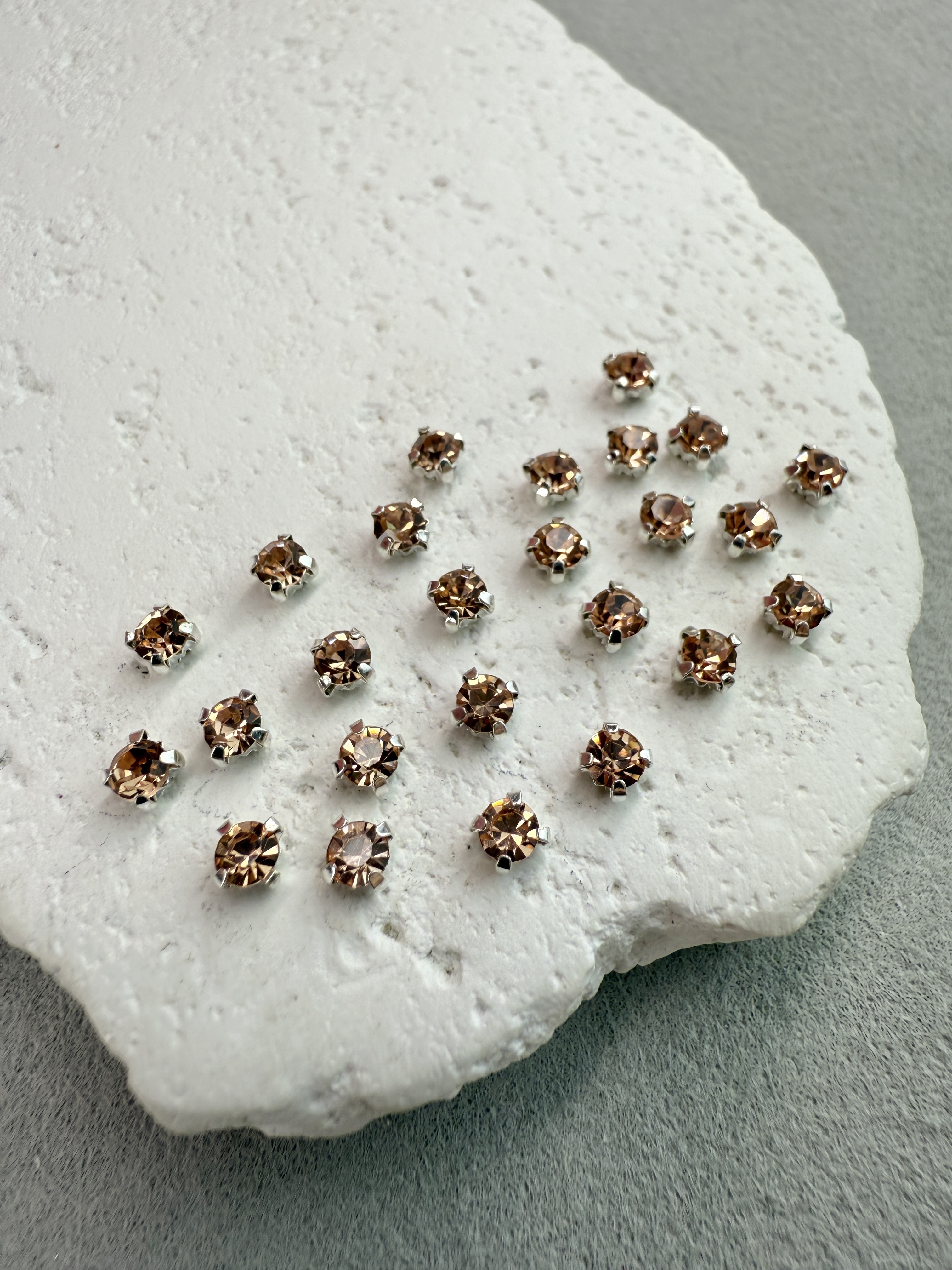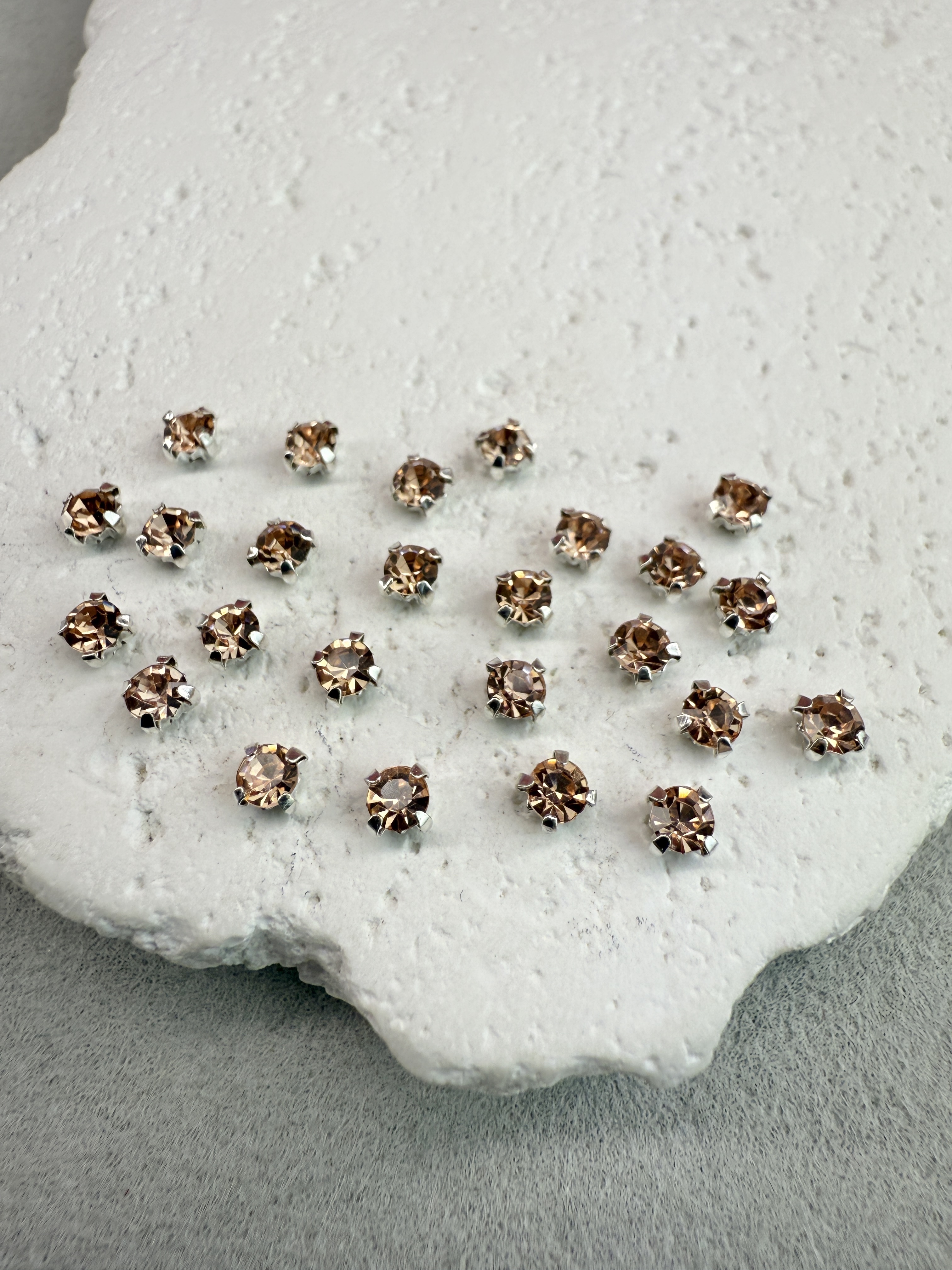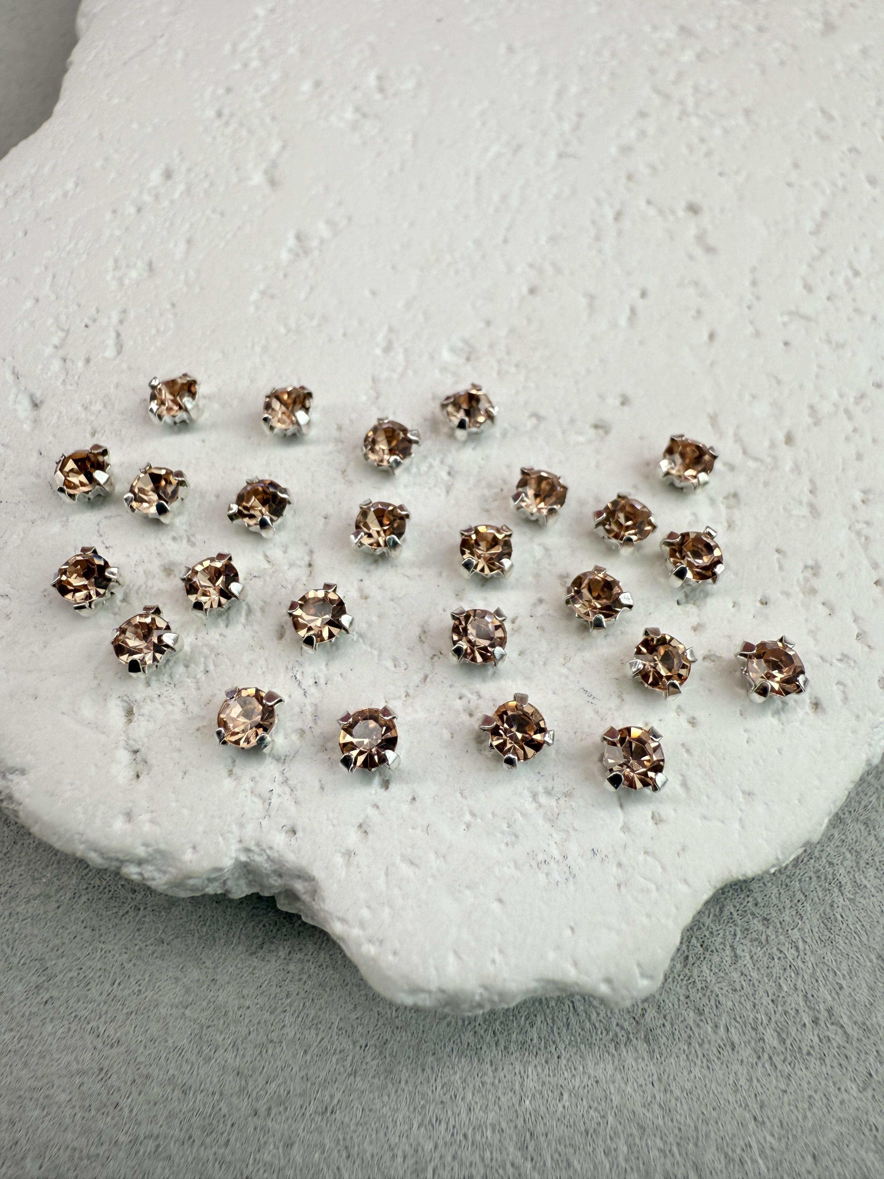 Стеклянные пришивные стразы в цапах 4 мм круглой формы (chatone).