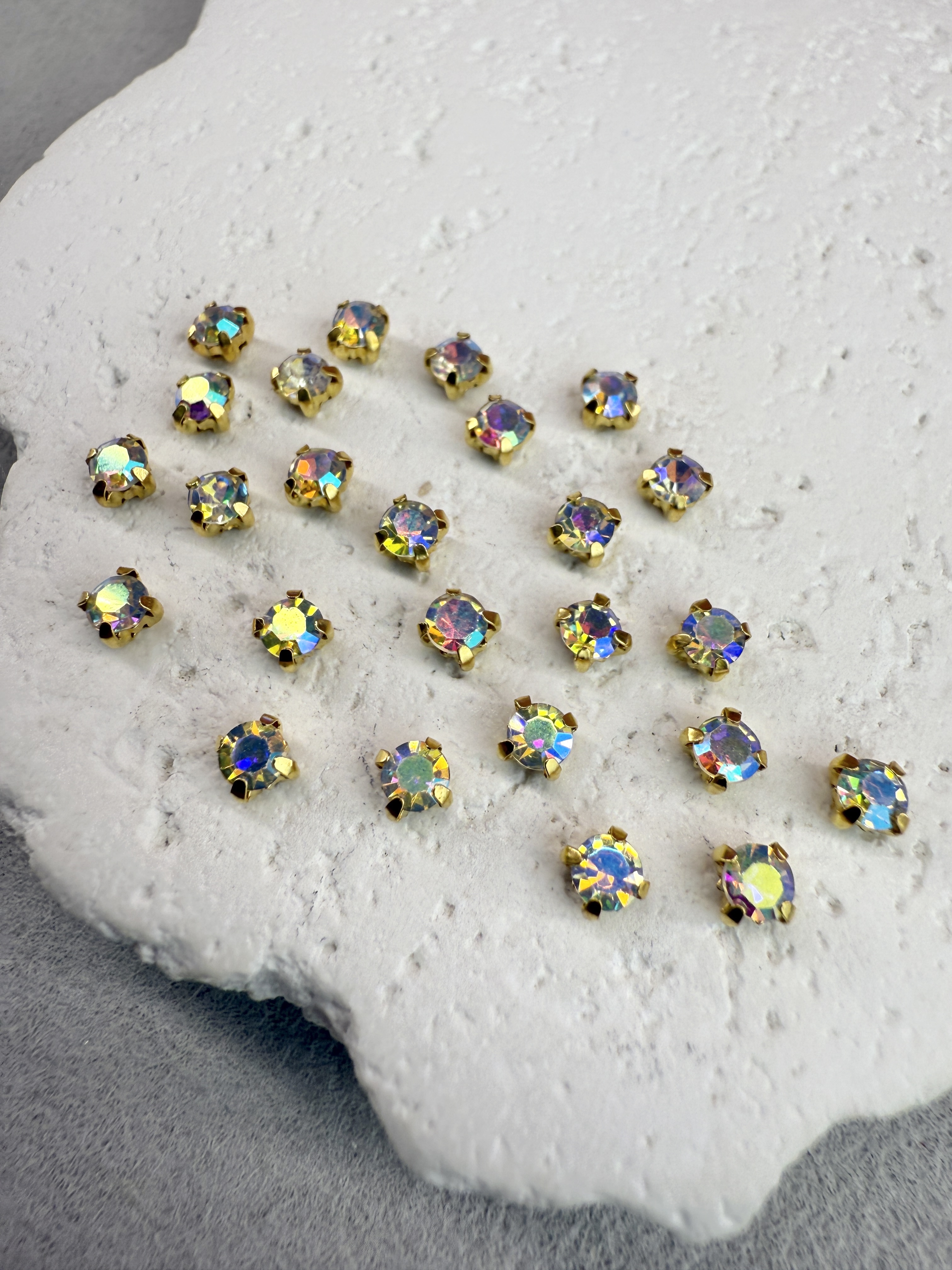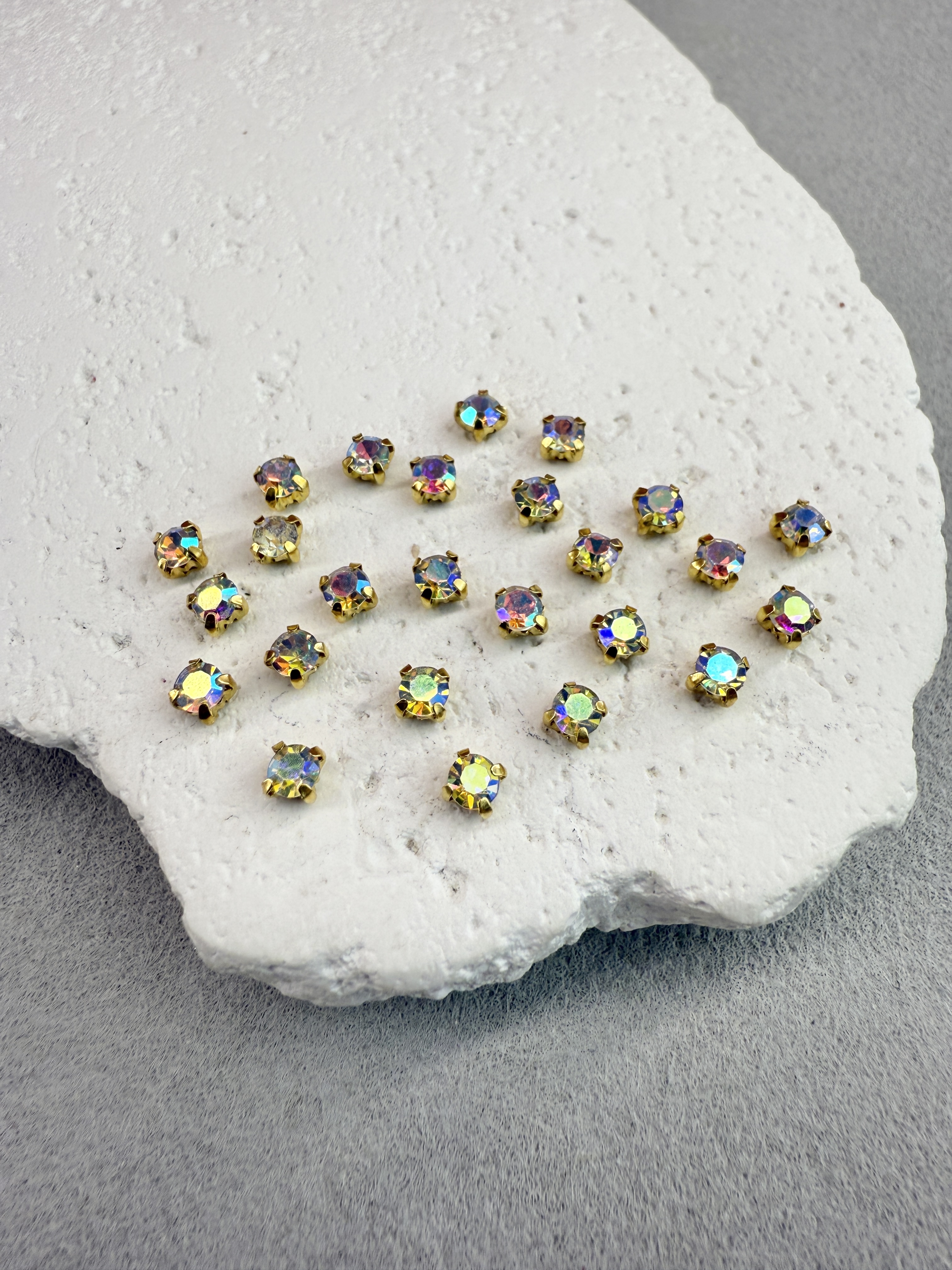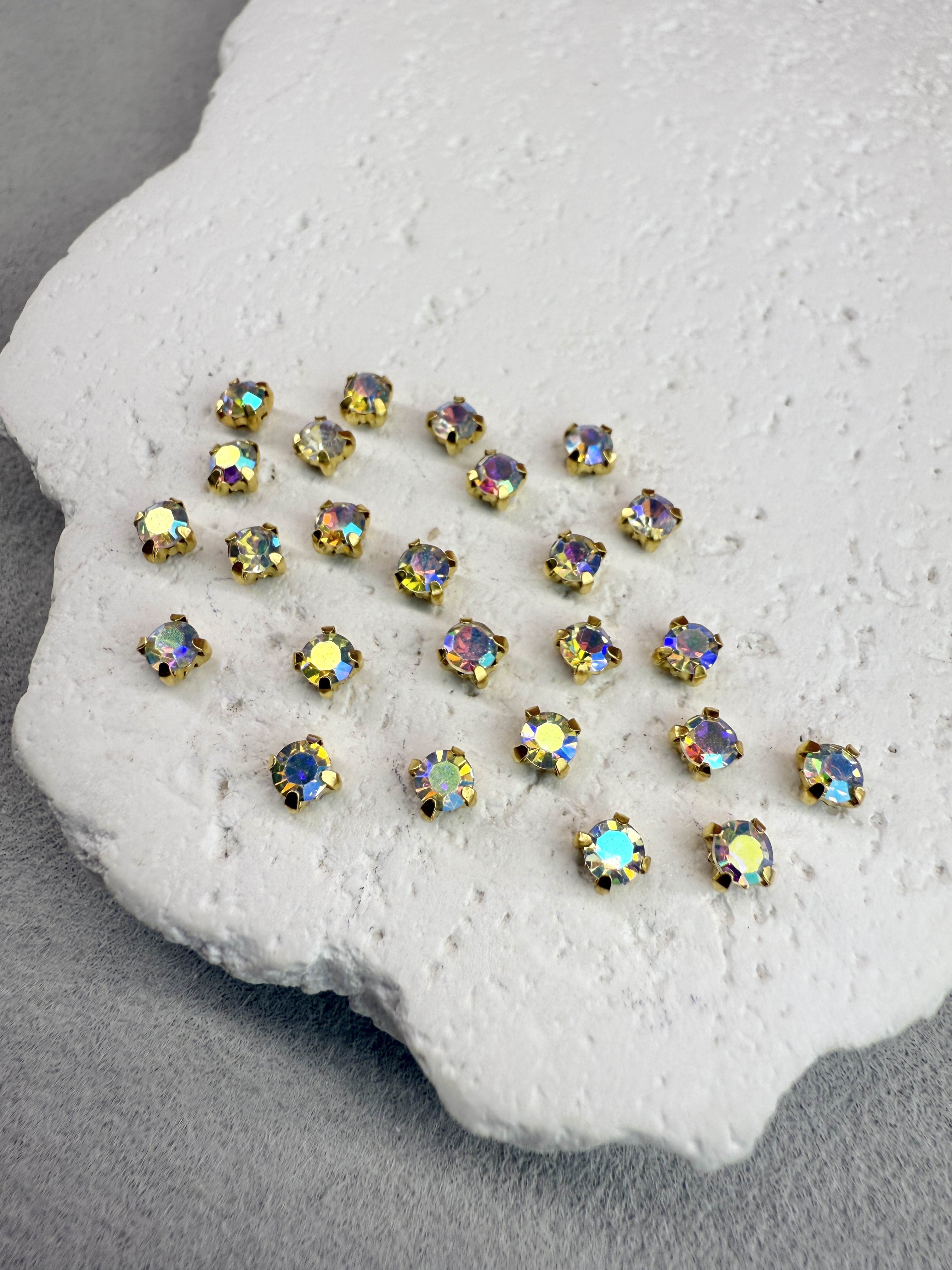 Стеклянные пришивные стразы в цапах 3 мм круглой формы (chatone).
