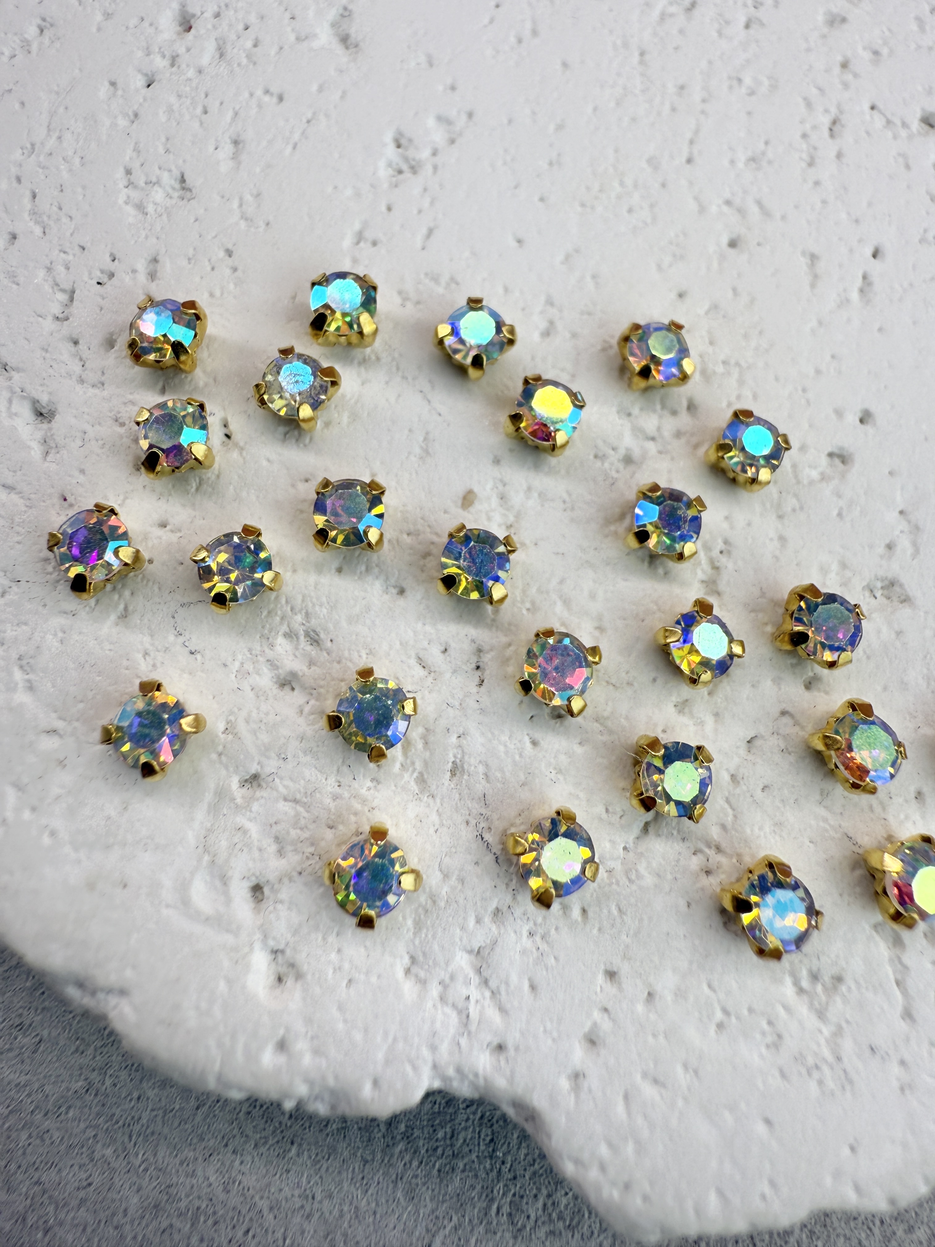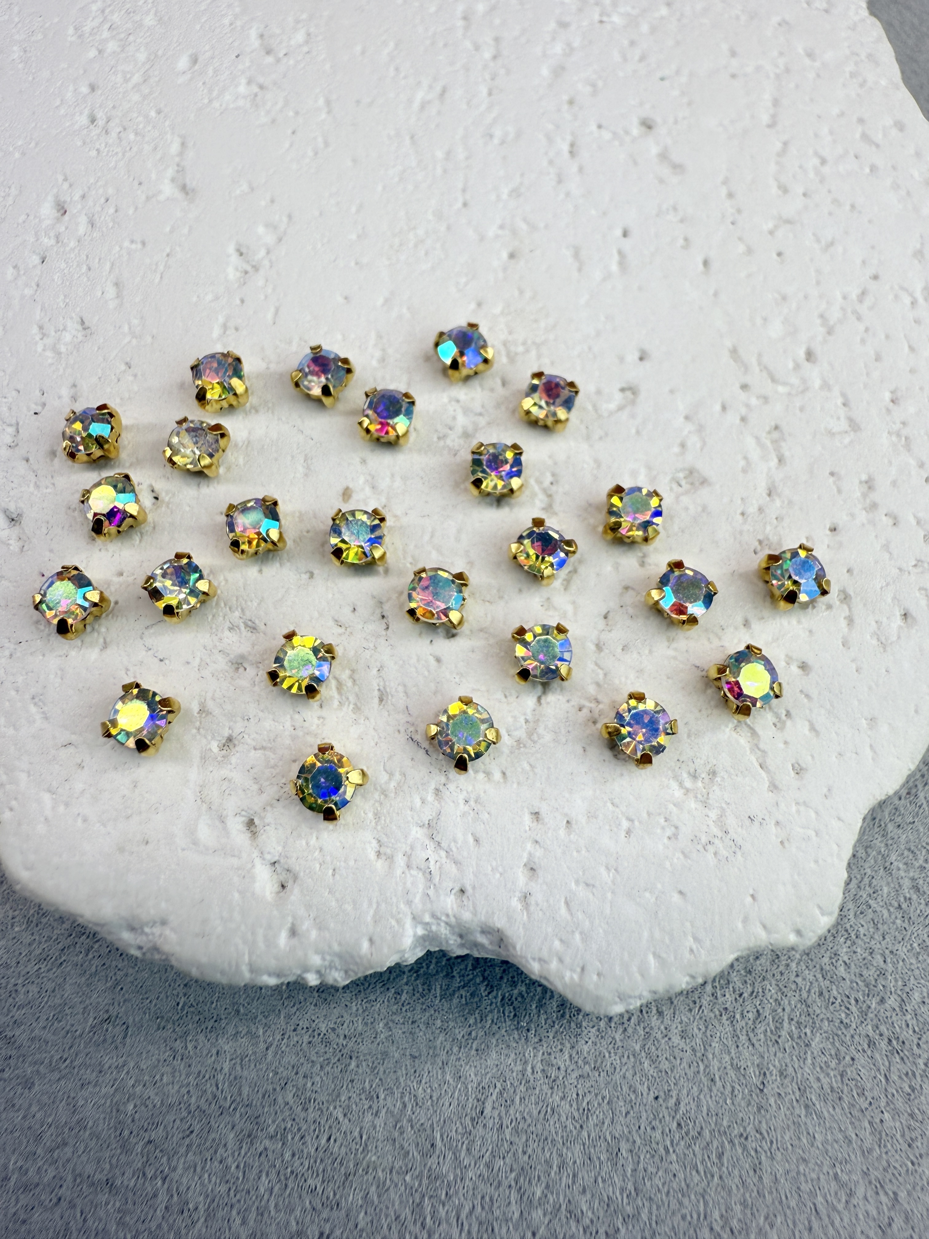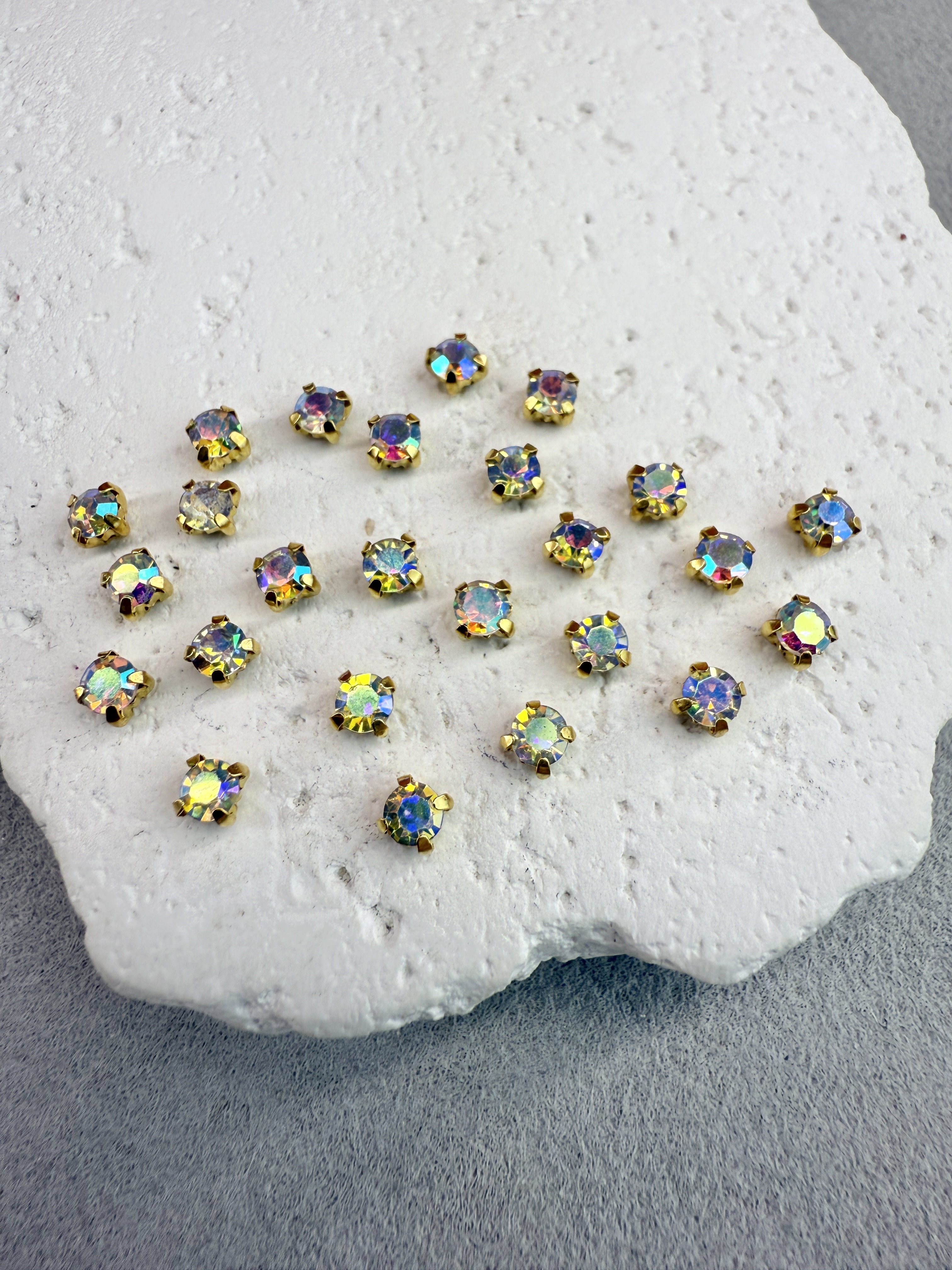 Стеклянные пришивные стразы в цапах 3 мм круглой формы (chatone).