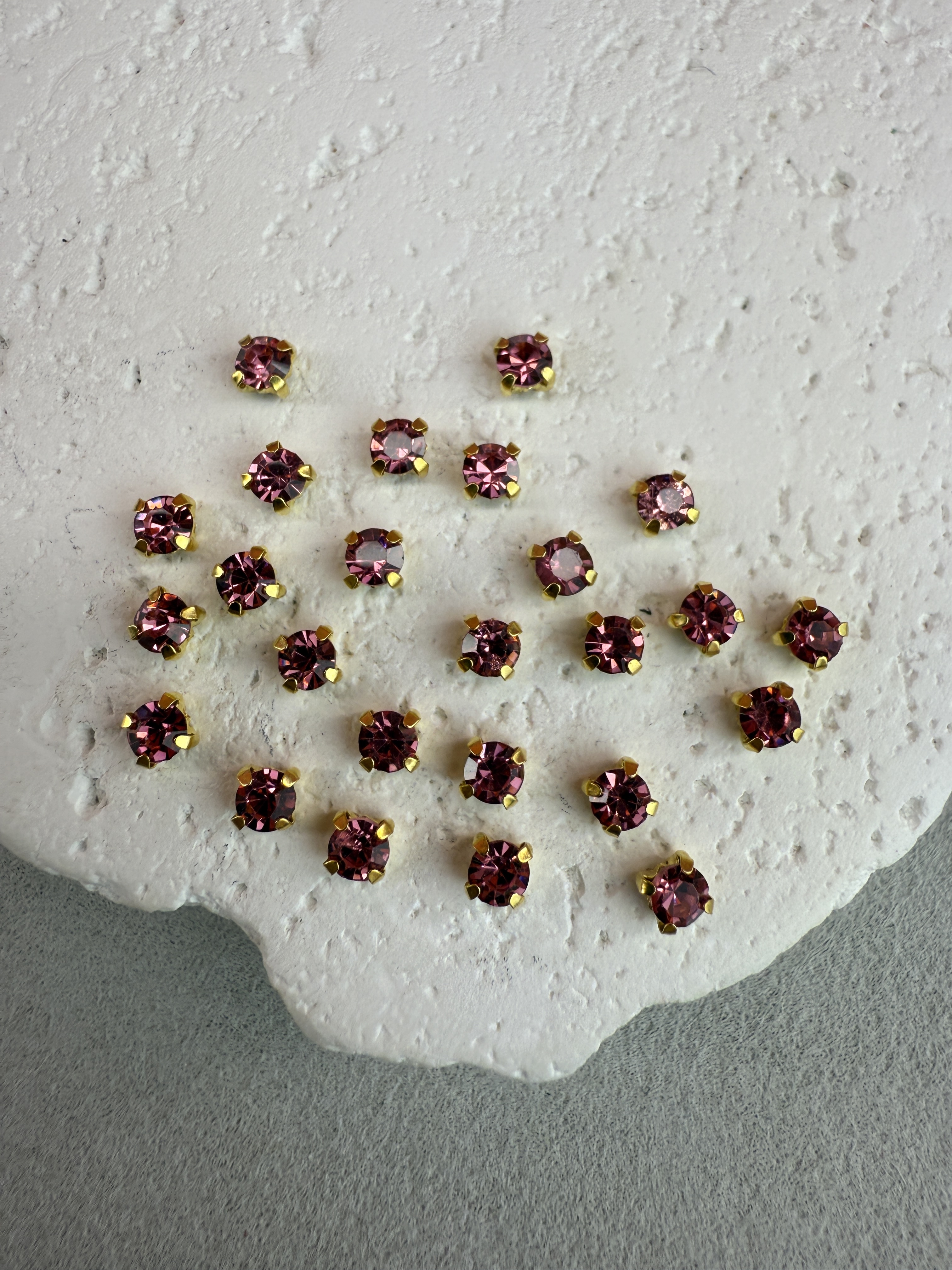 Стеклянные пришивные стразы в цапах 4 мм круглой формы (chatone).