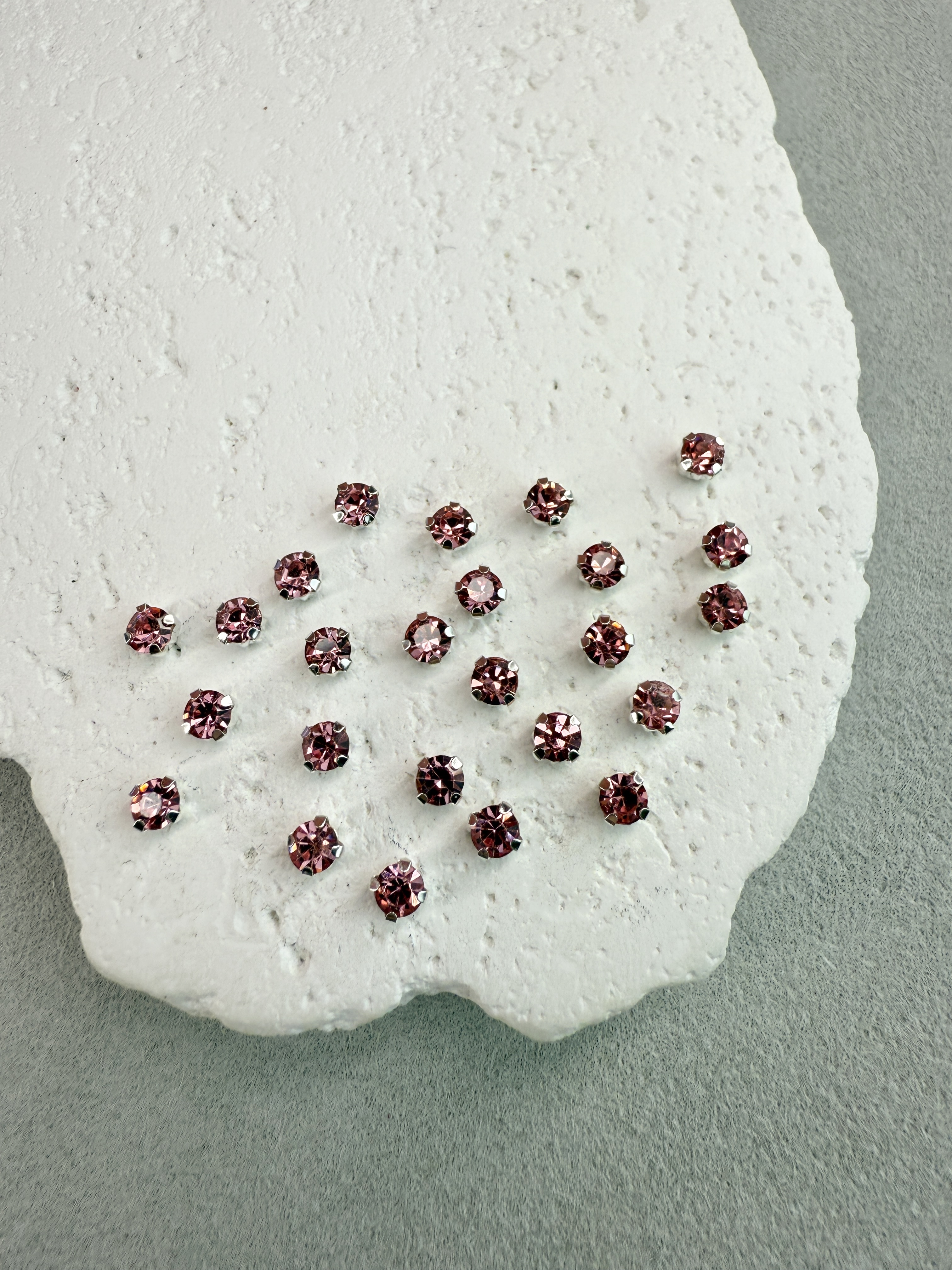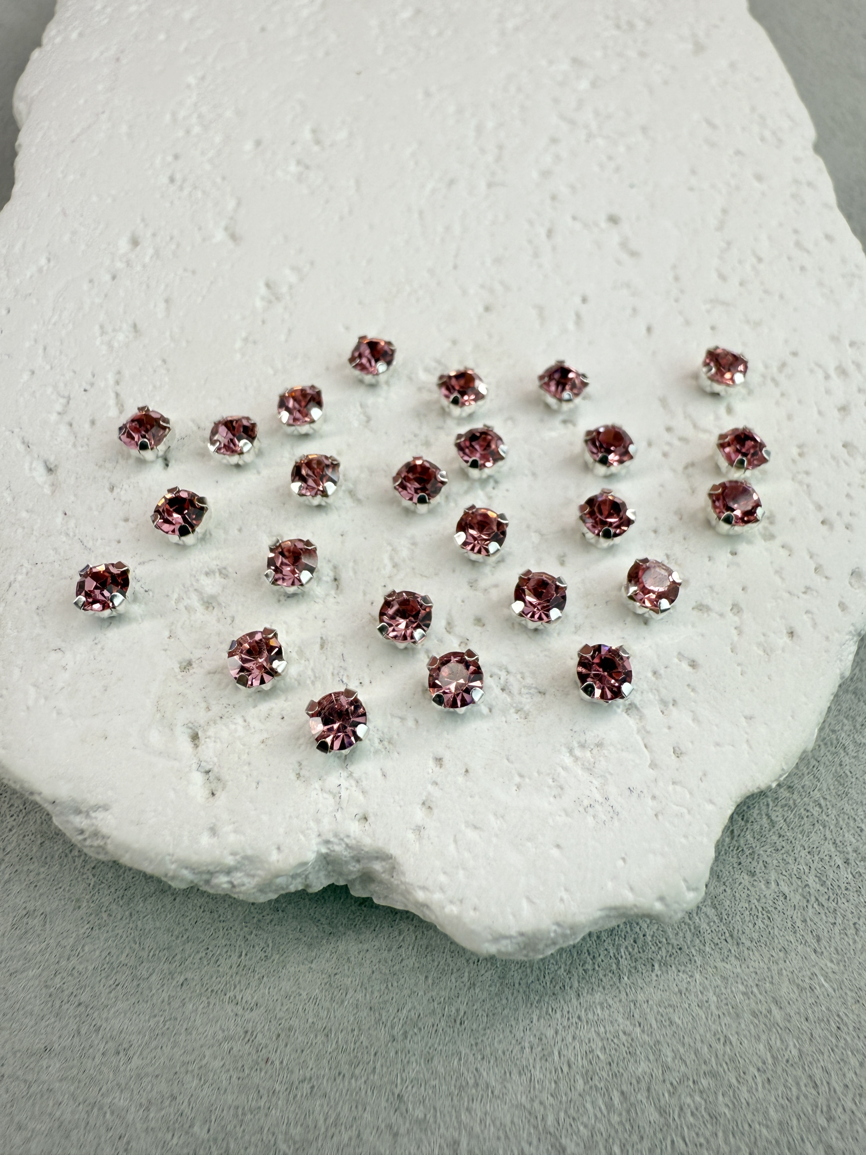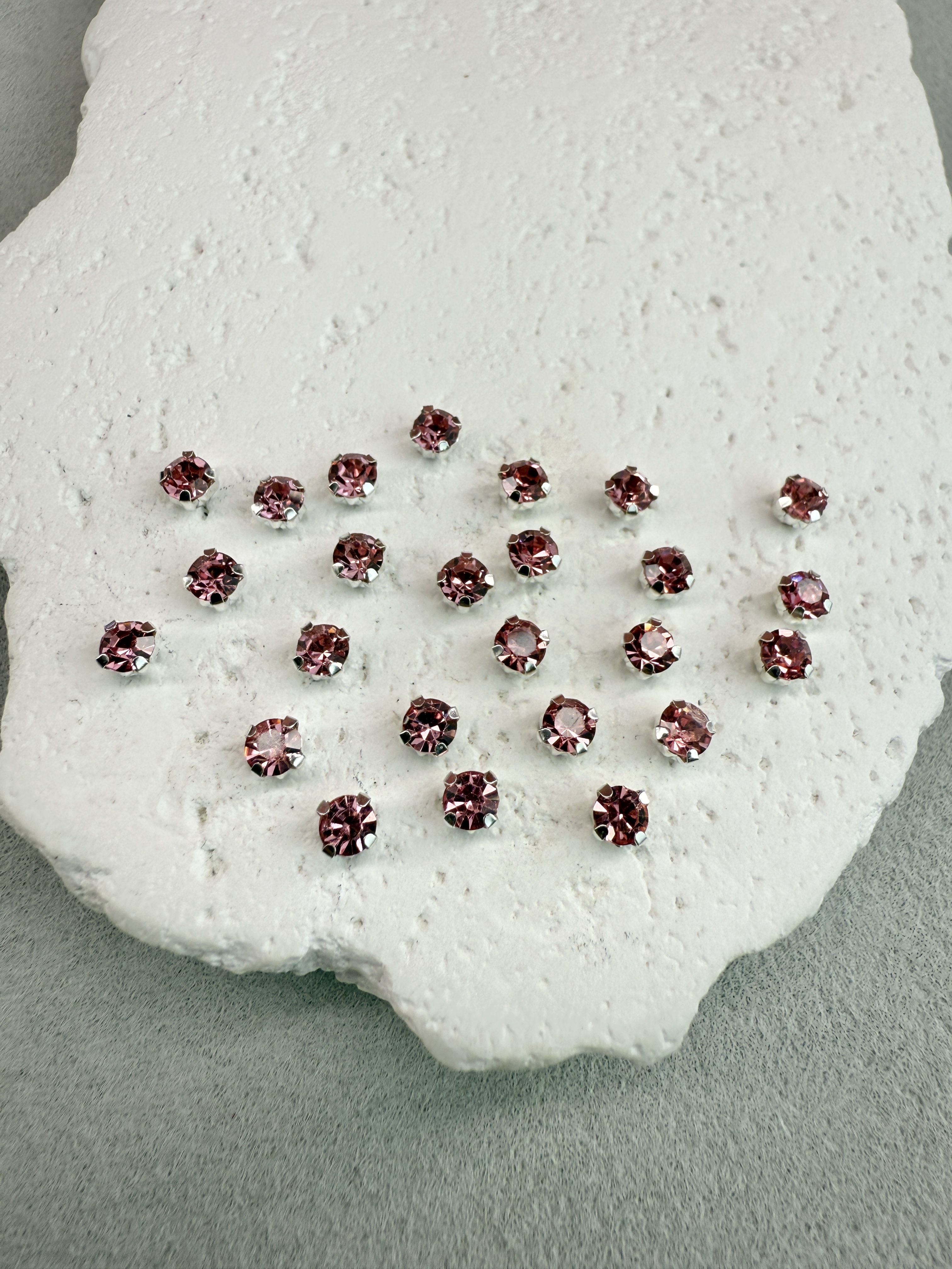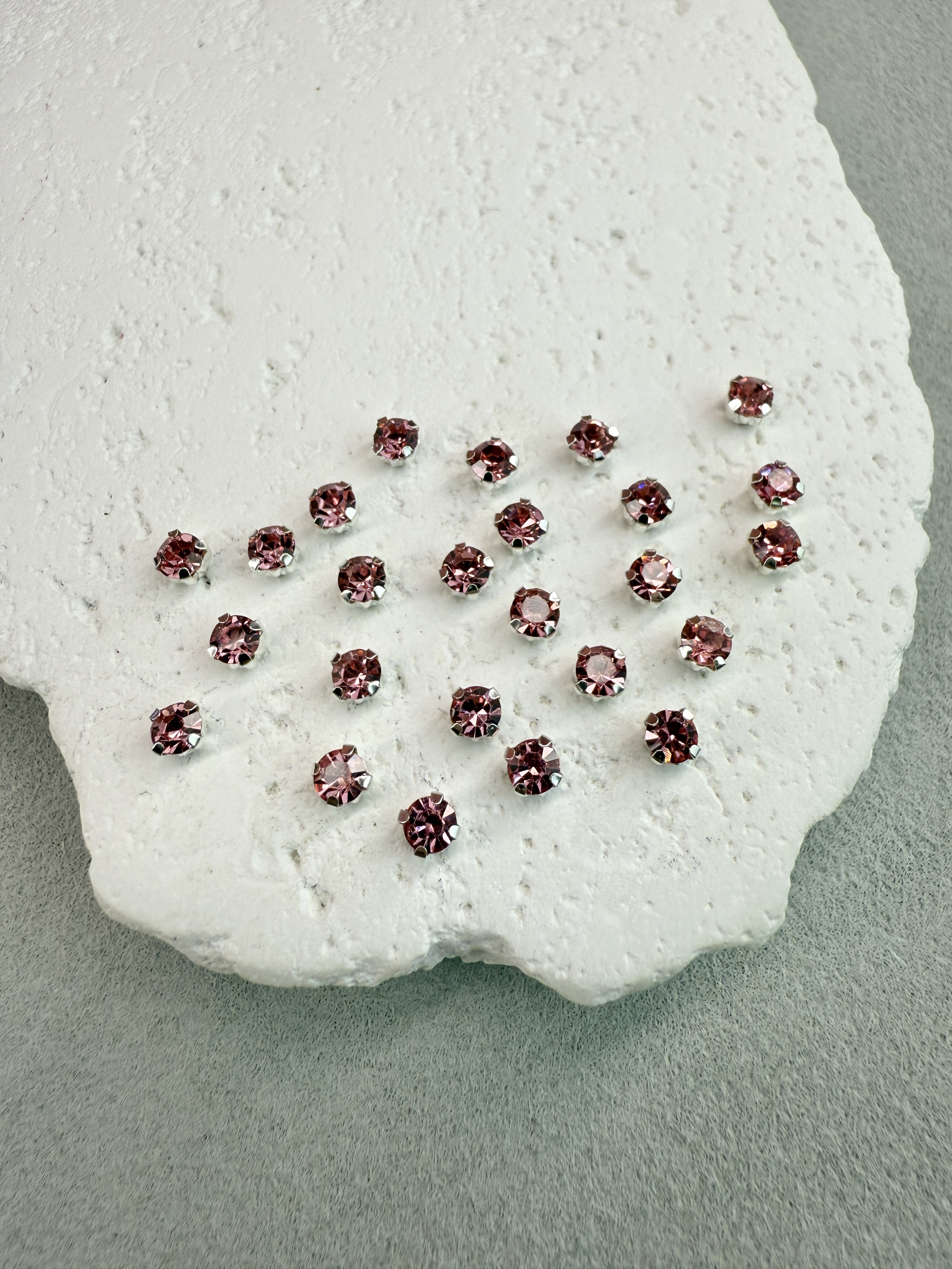 Шатоны 4 мм, Светлая роза в серебре, 25 шт