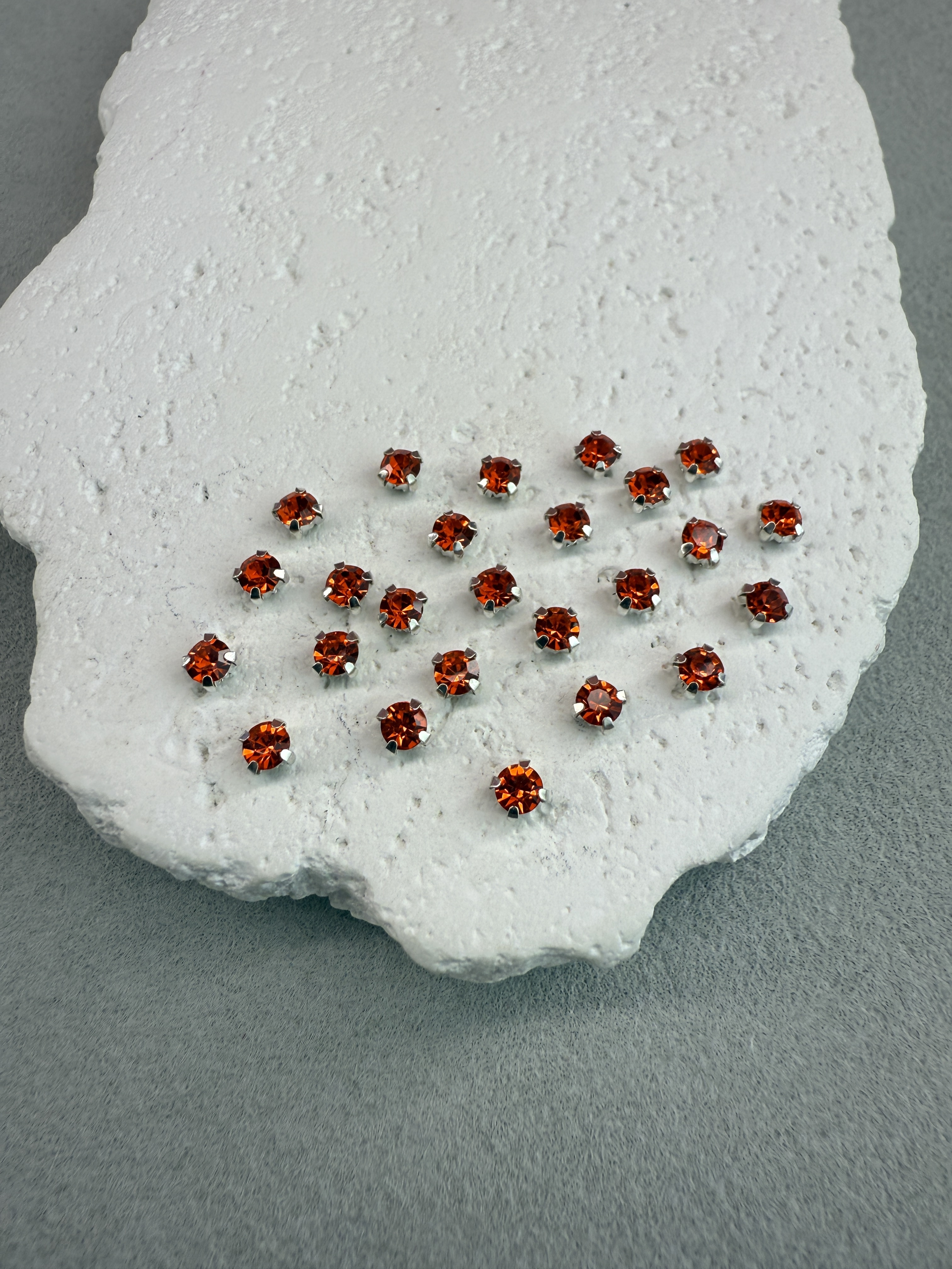 Стеклянные пришивные стразы в цапах 4 мм круглой формы (chatone).