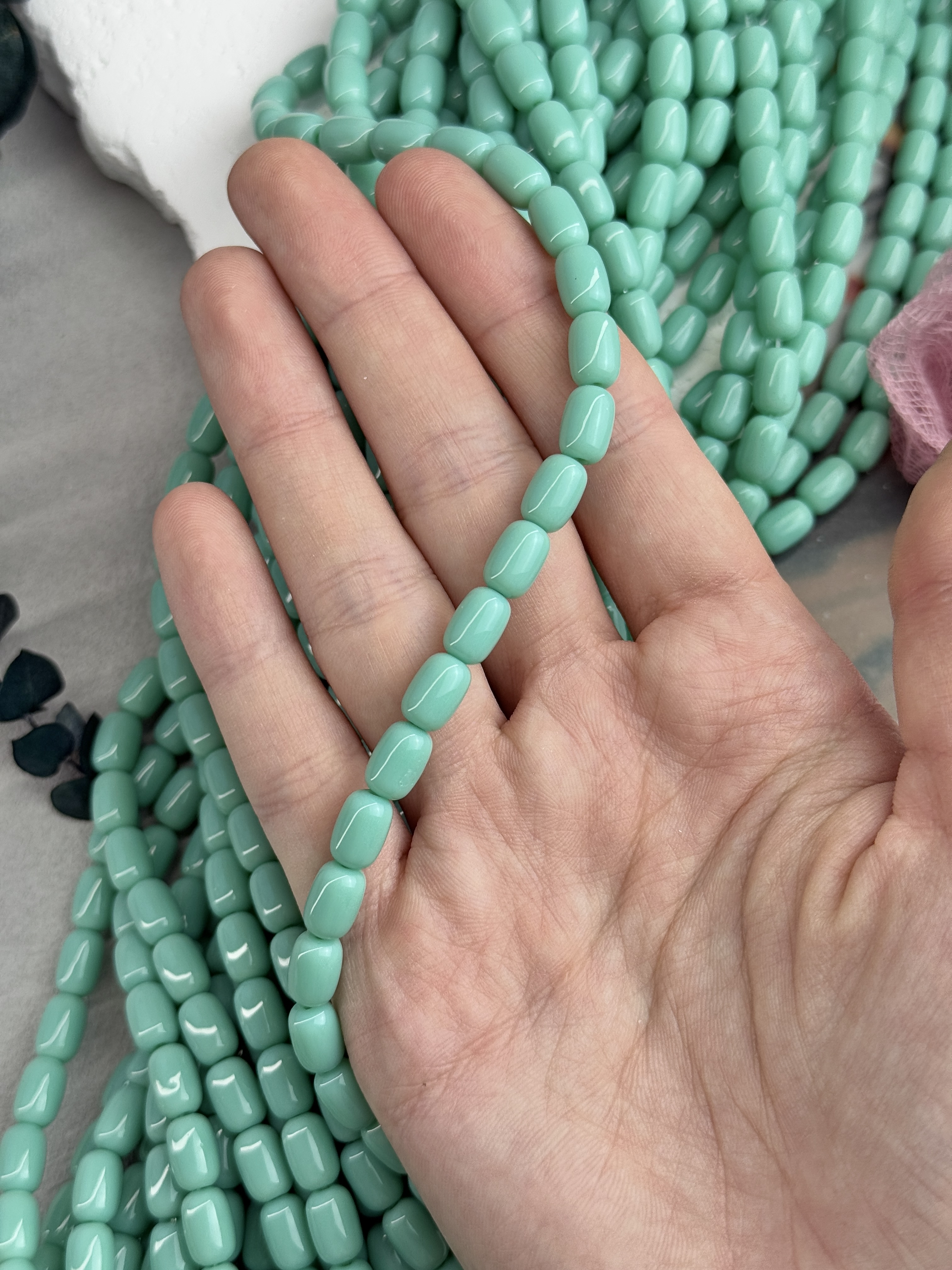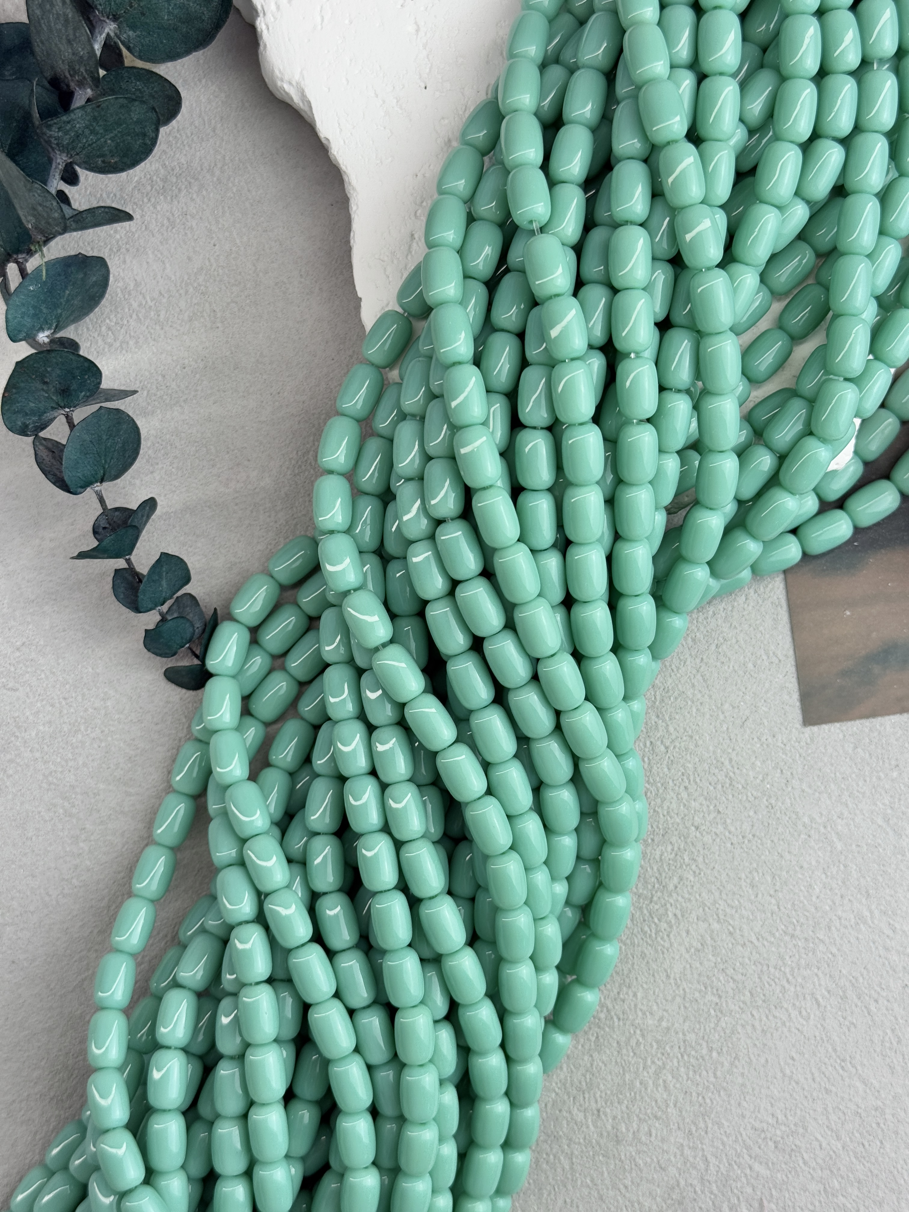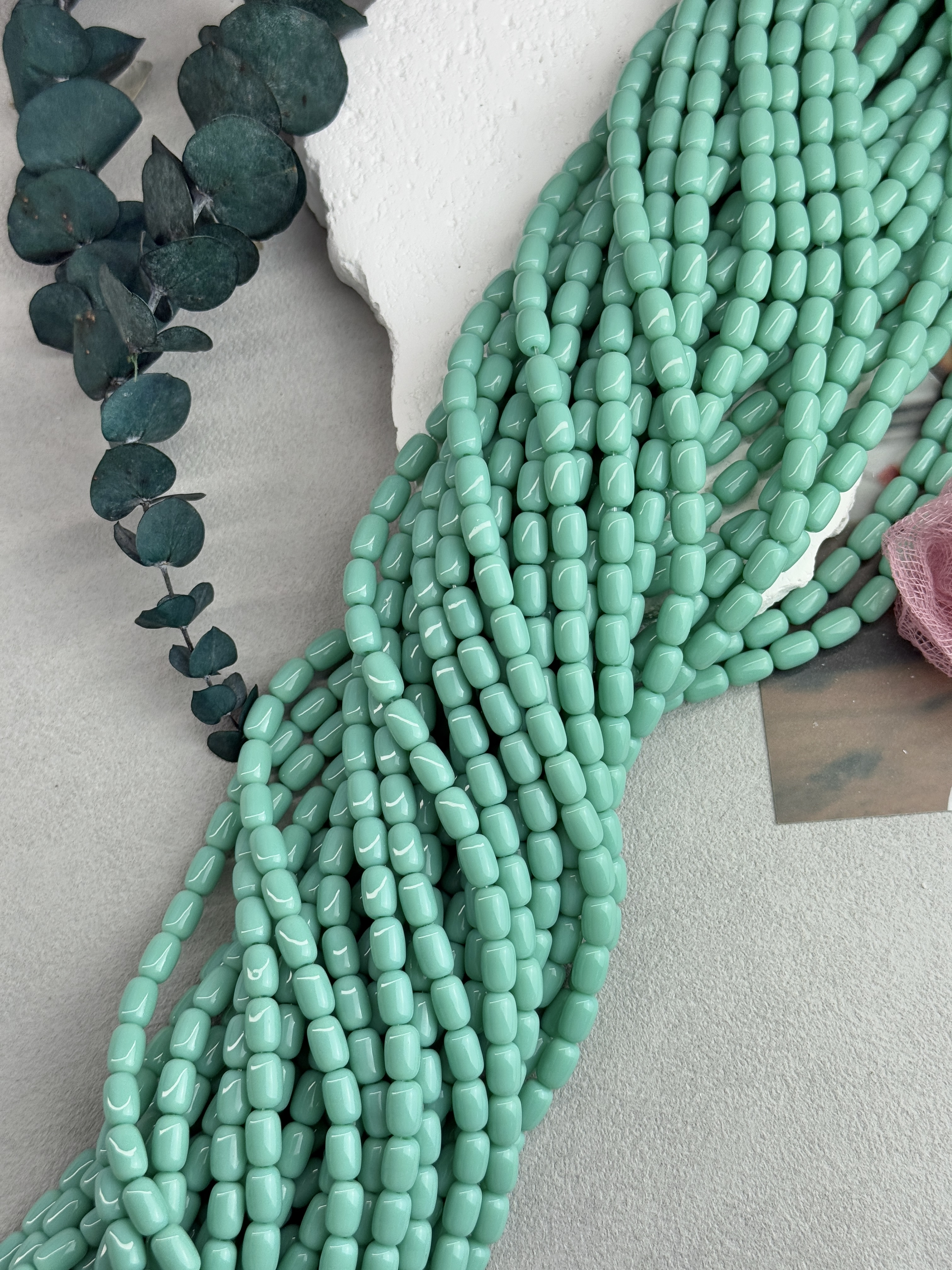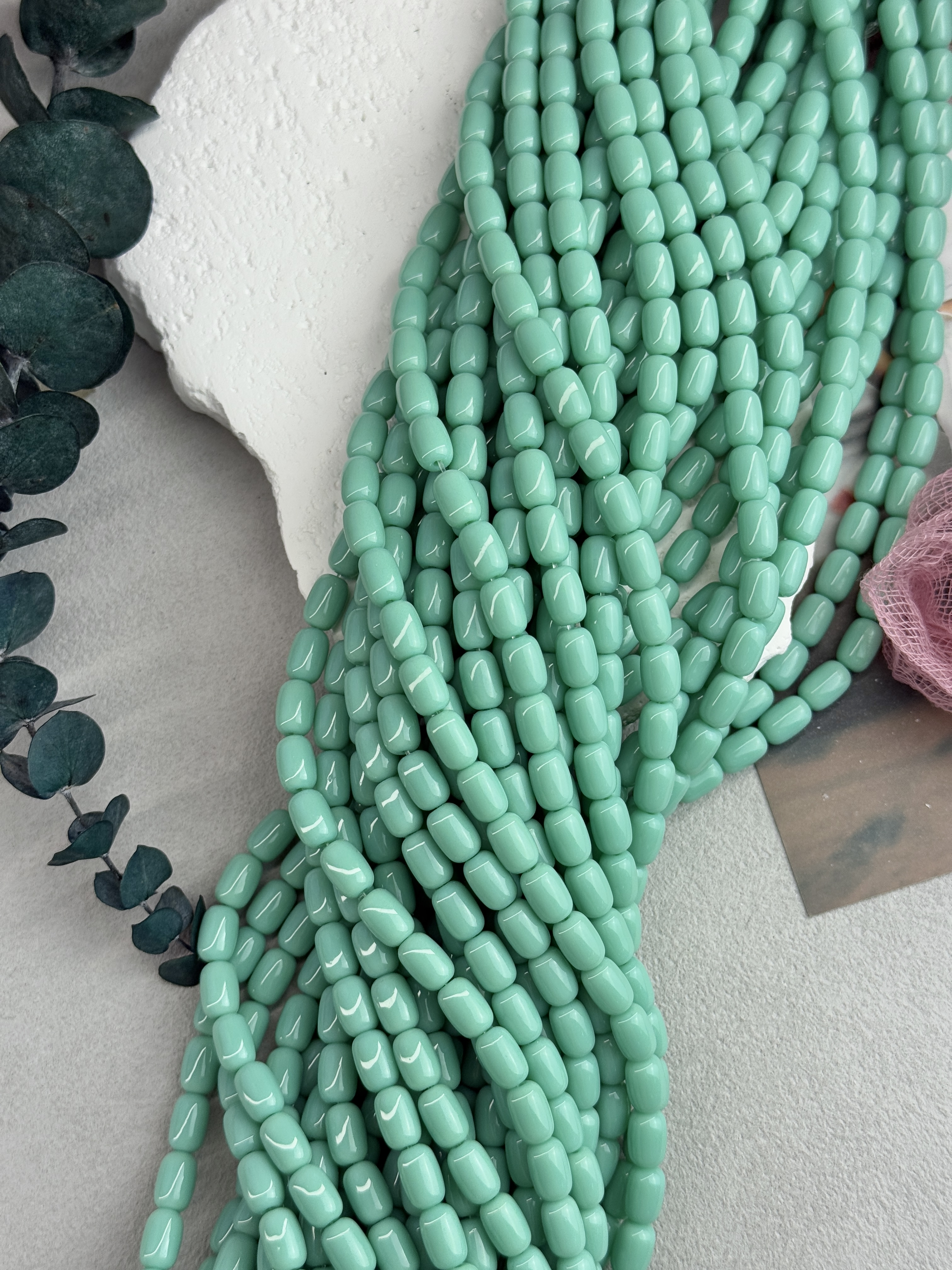 Бусины из цветного стекла под керамику. Гипоаллергенны, не выцветают и не боятся трения и царапин. Продаются нитью 38 см, размер одного бочонка 6*9 мм. Могут быть на нити или россыпью.