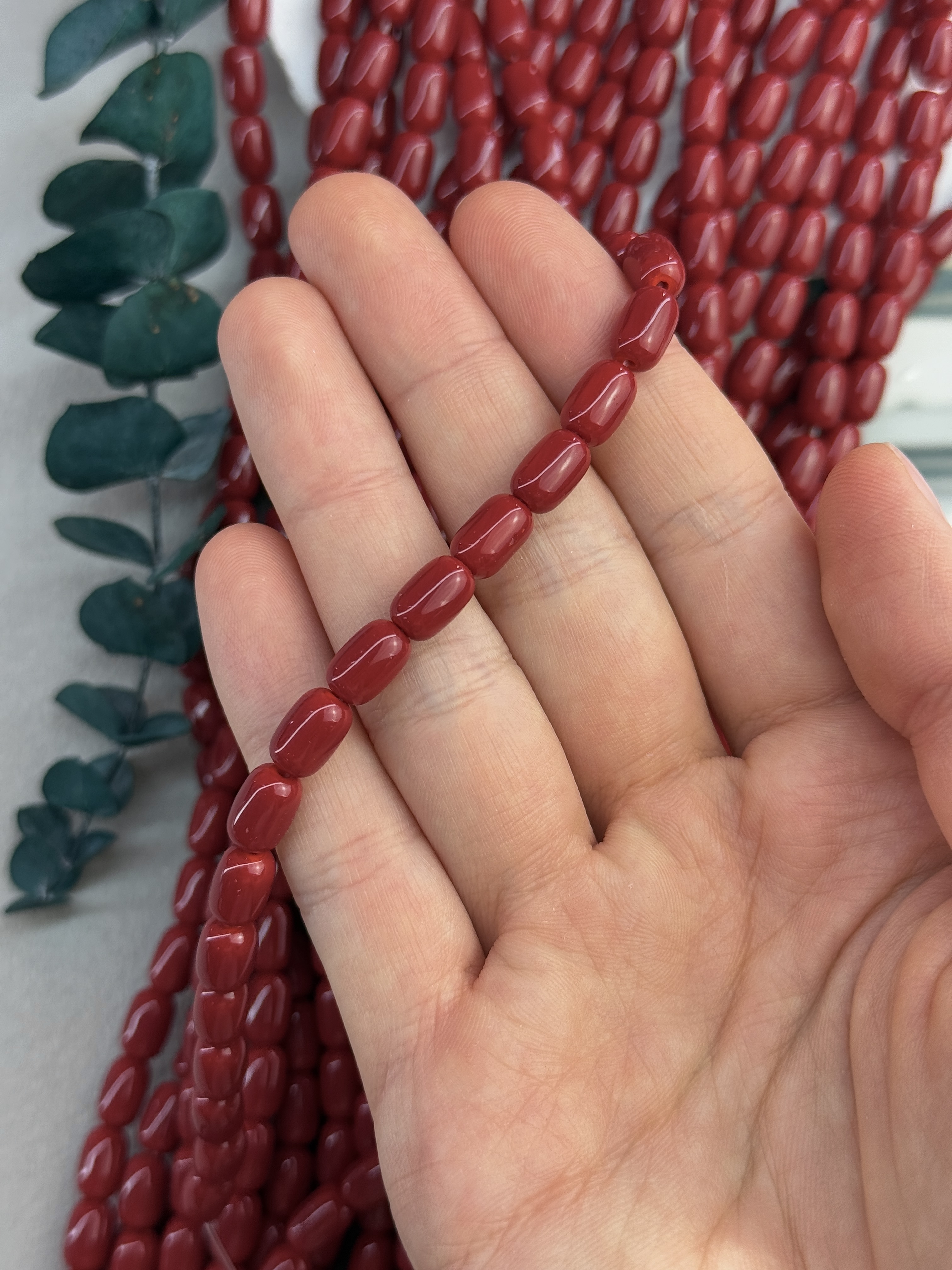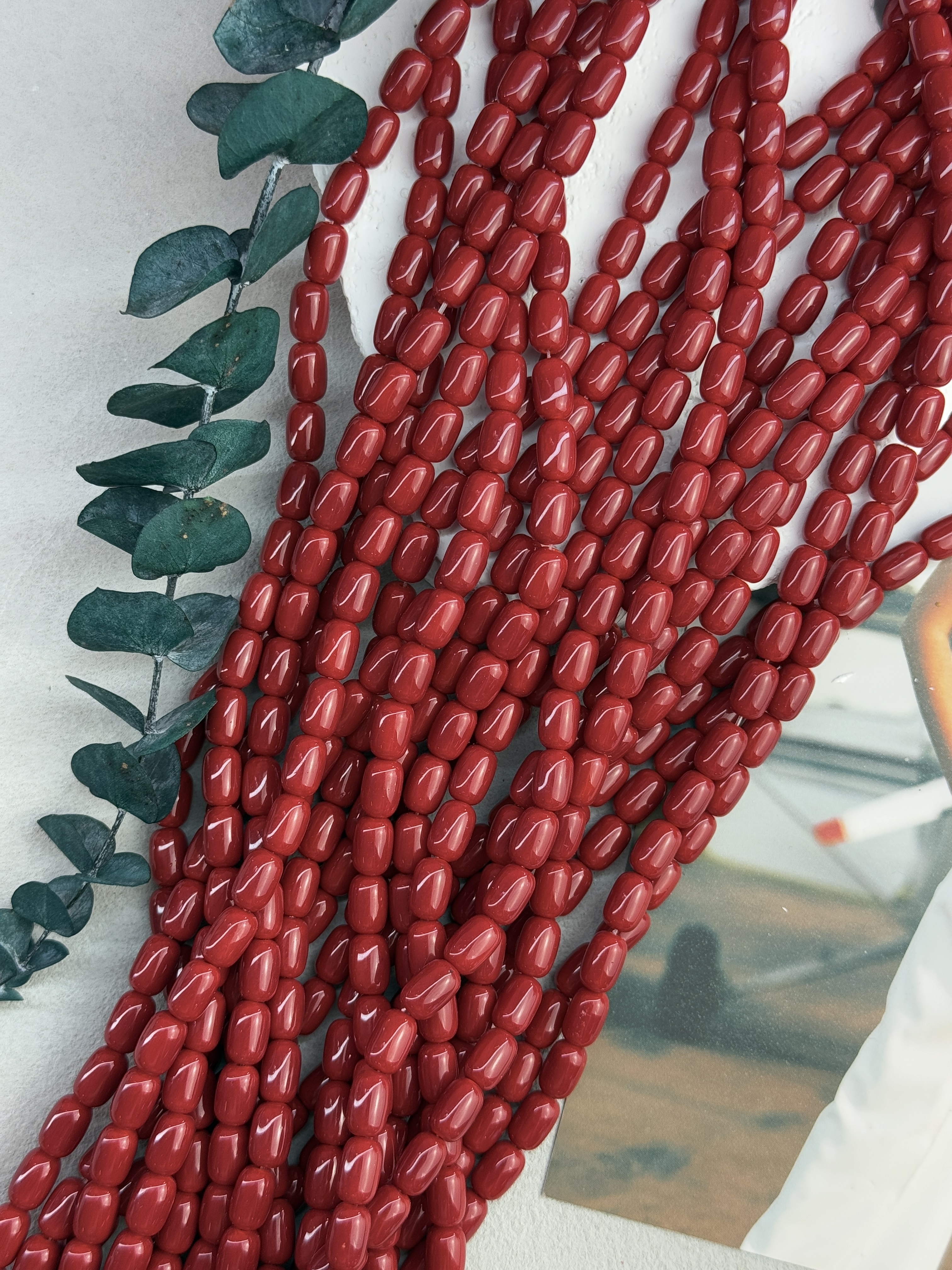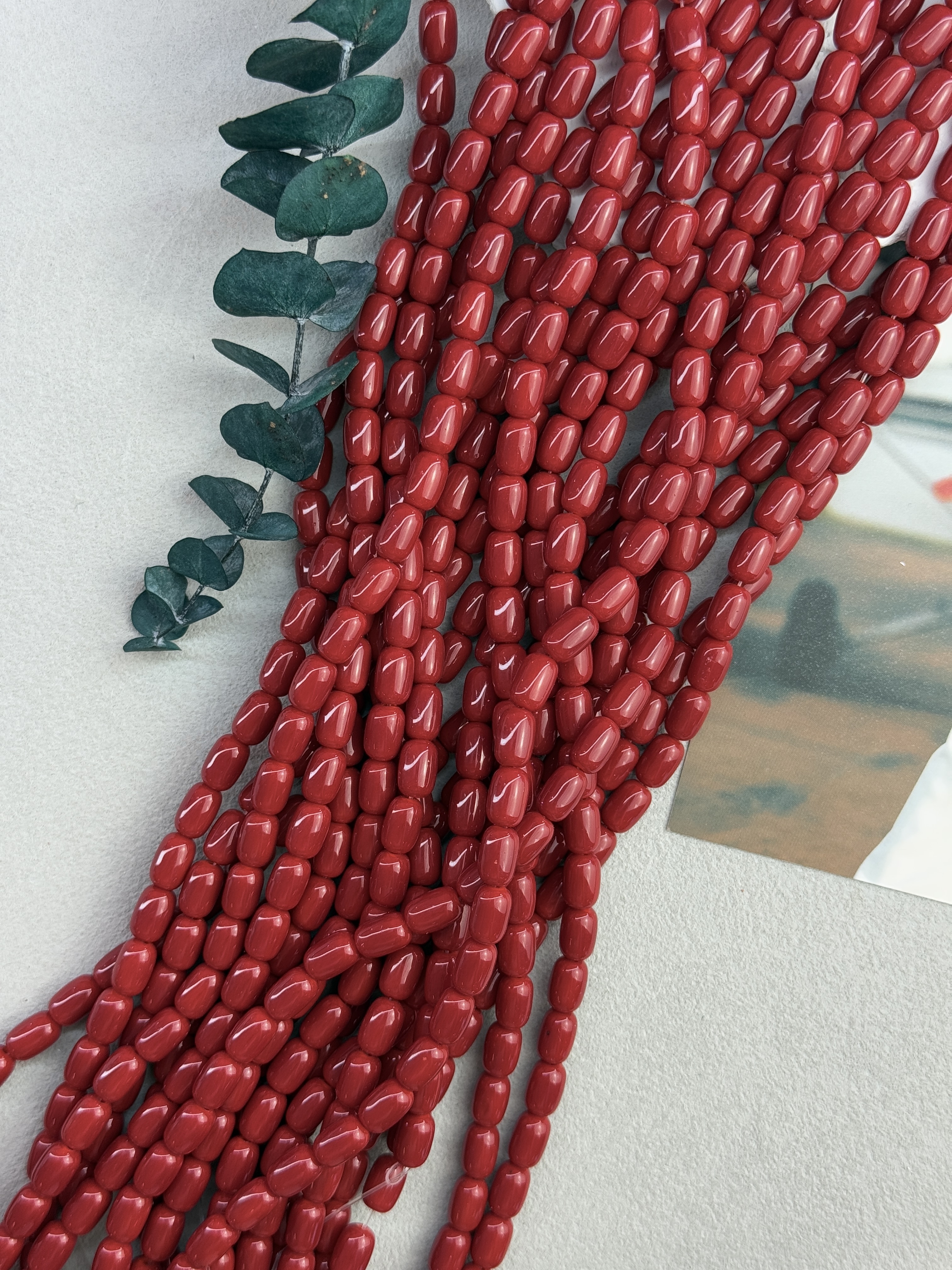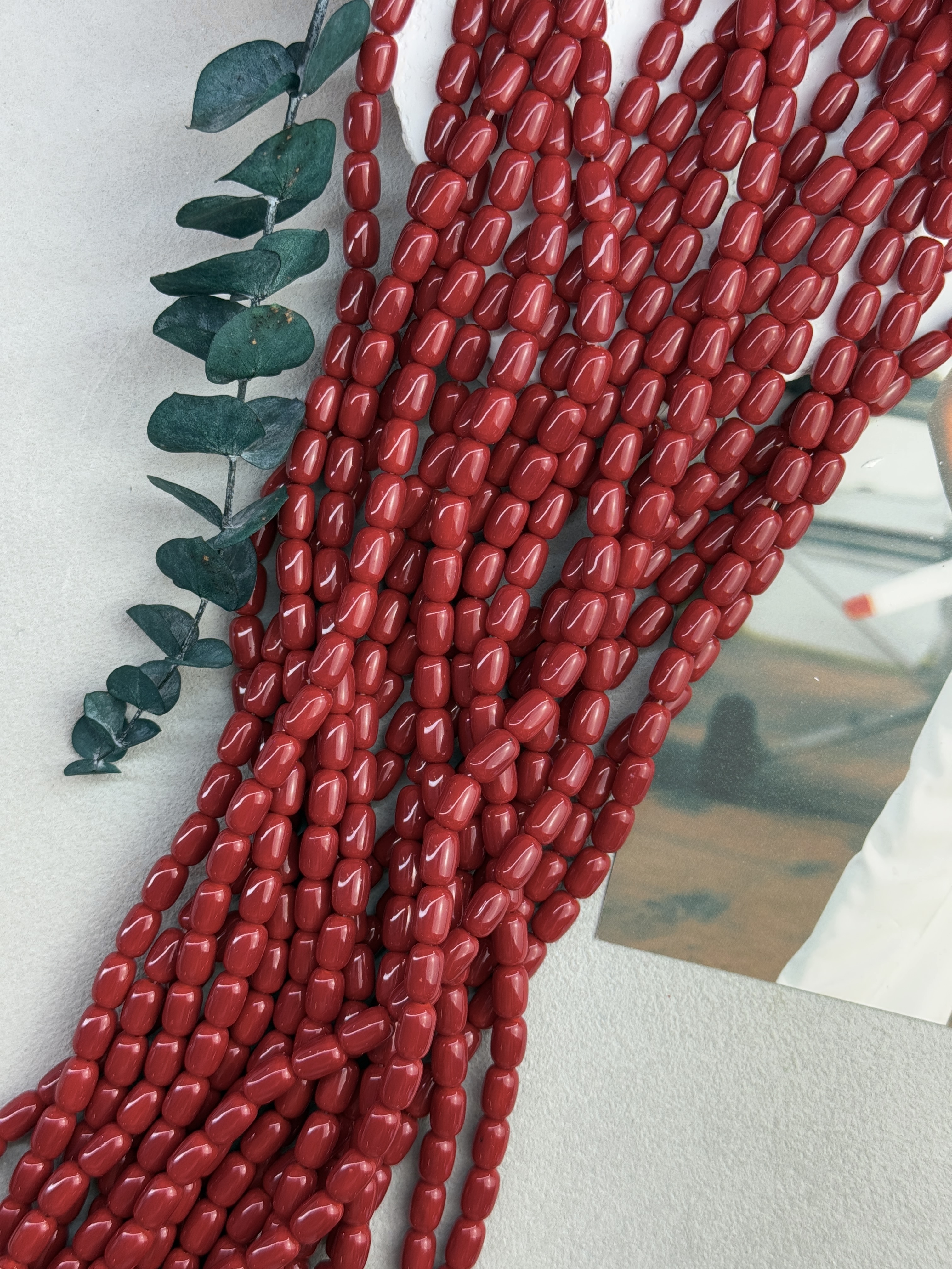Бусины из цветного стекла под керамику. Гипоаллергенны, не выцветают и не боятся трения и царапин. Продаются нитью 38 см, размер одного бочонка 6*9 мм. Могут быть на нити или россыпью.