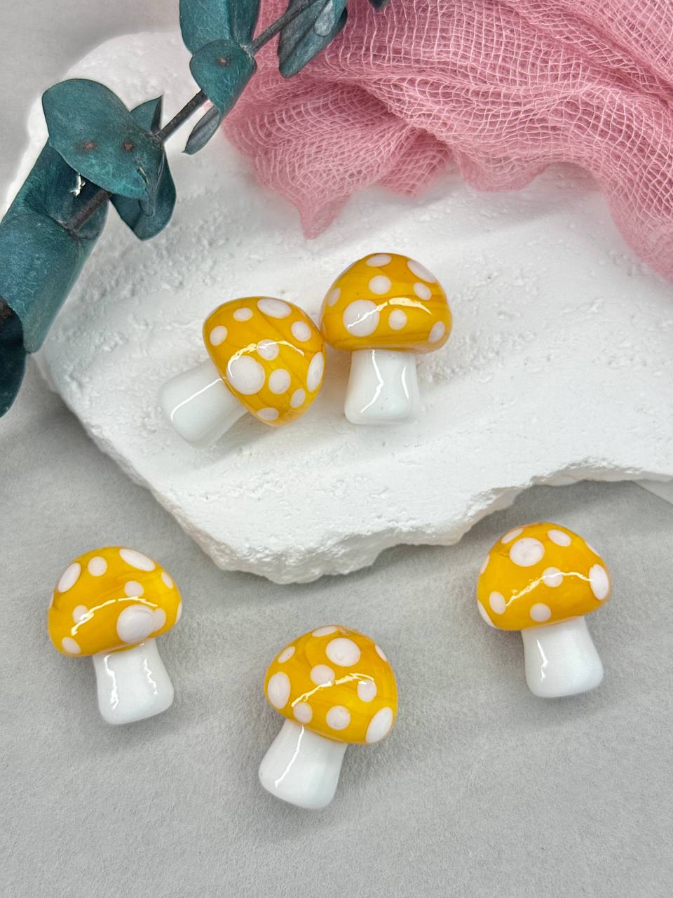 Стеклянные бусины лэмпворк в форме грибочка. Бусины устойчивы к царапинам и выцветанию, сохраняя привлекательность ваших работ долгие годы. Стекло безопасное и гипоаллергенное – подходит даже для чувствительной кожи.