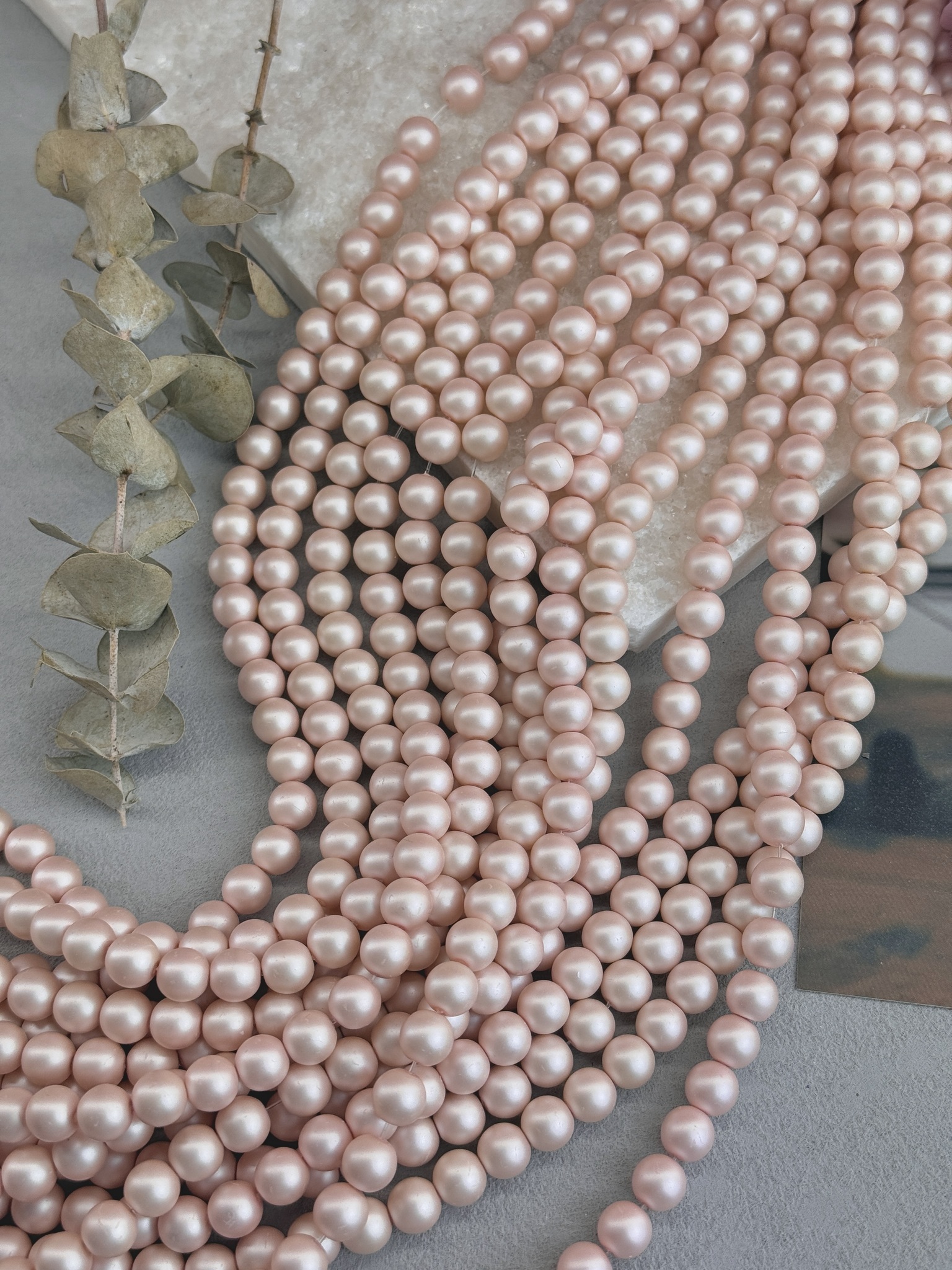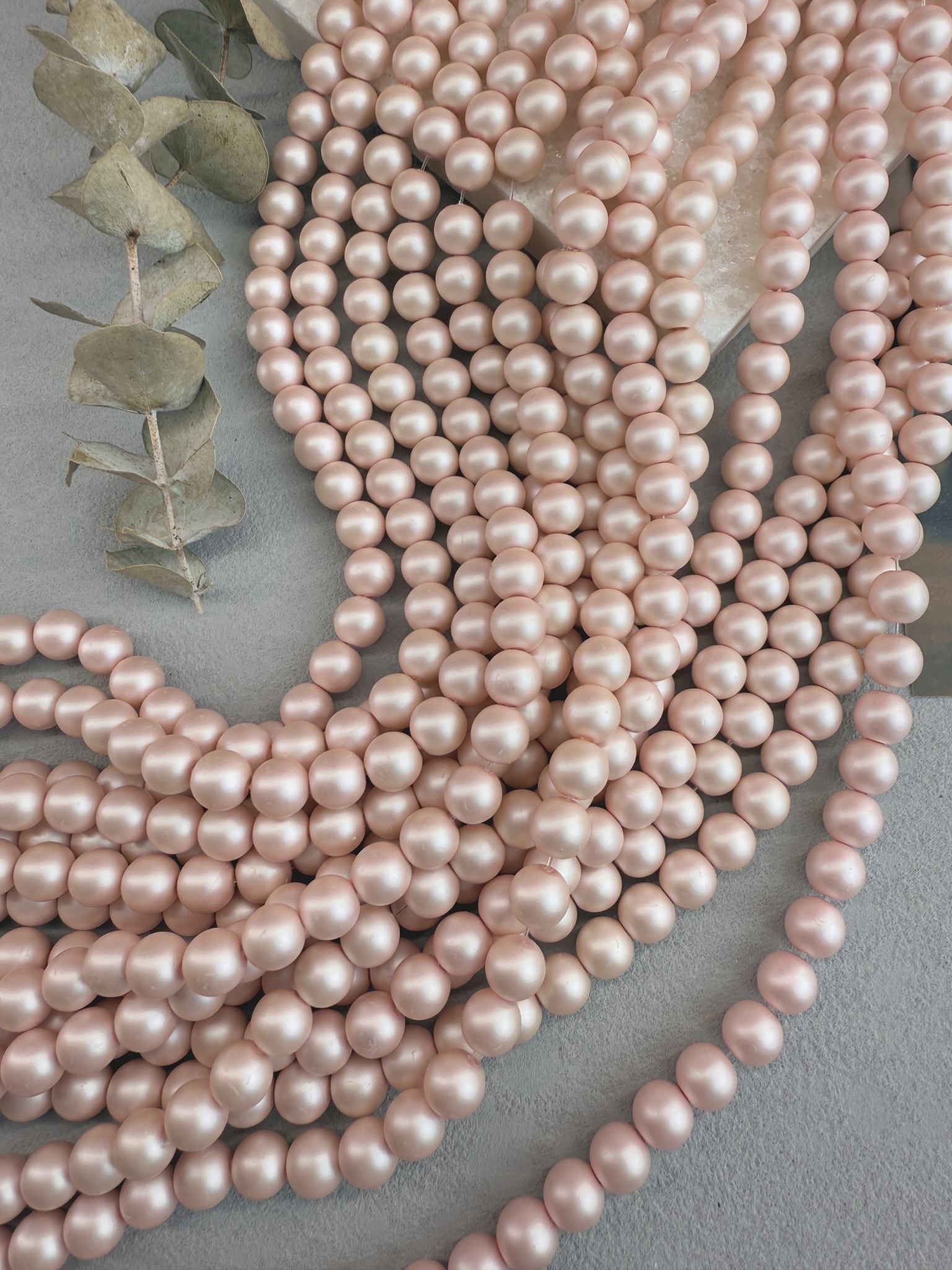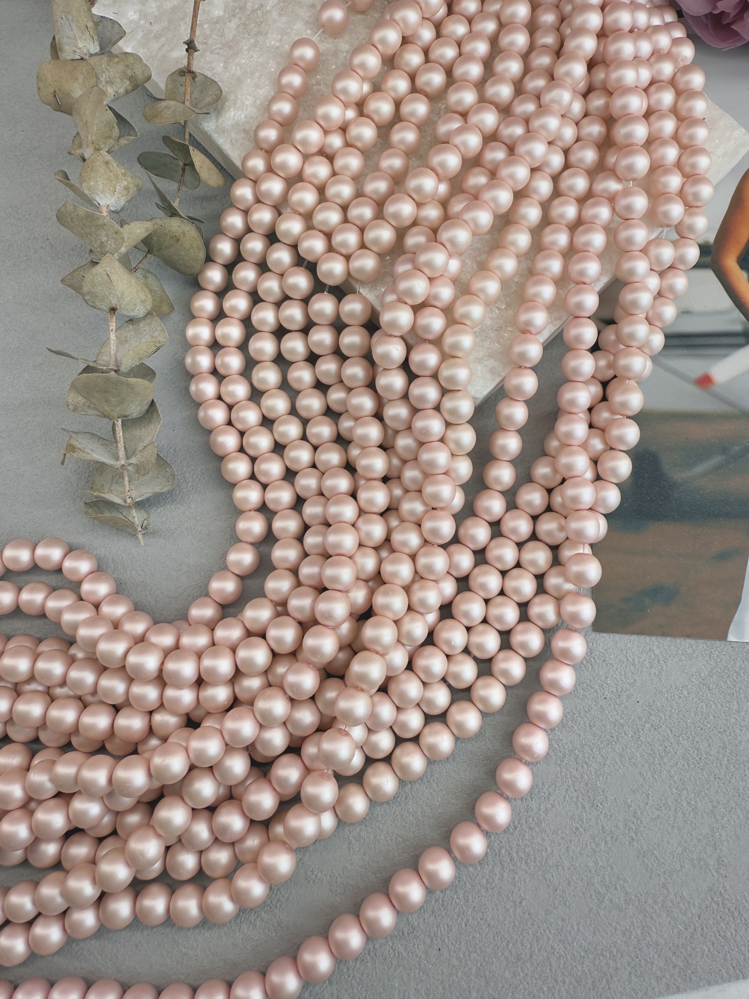 Стеклянный жемчуг с цветным матовым покрытием. Проедется на нити или россыпью. Подходит для вышивки и сборки украшений ручной работы таких как колье, серьги, ободки (не рекомендуем использовать данных жемчуг в браслетах и подвесах, а также других украшениях, где возможно сильное трение изделия). Размер 8 мм.
