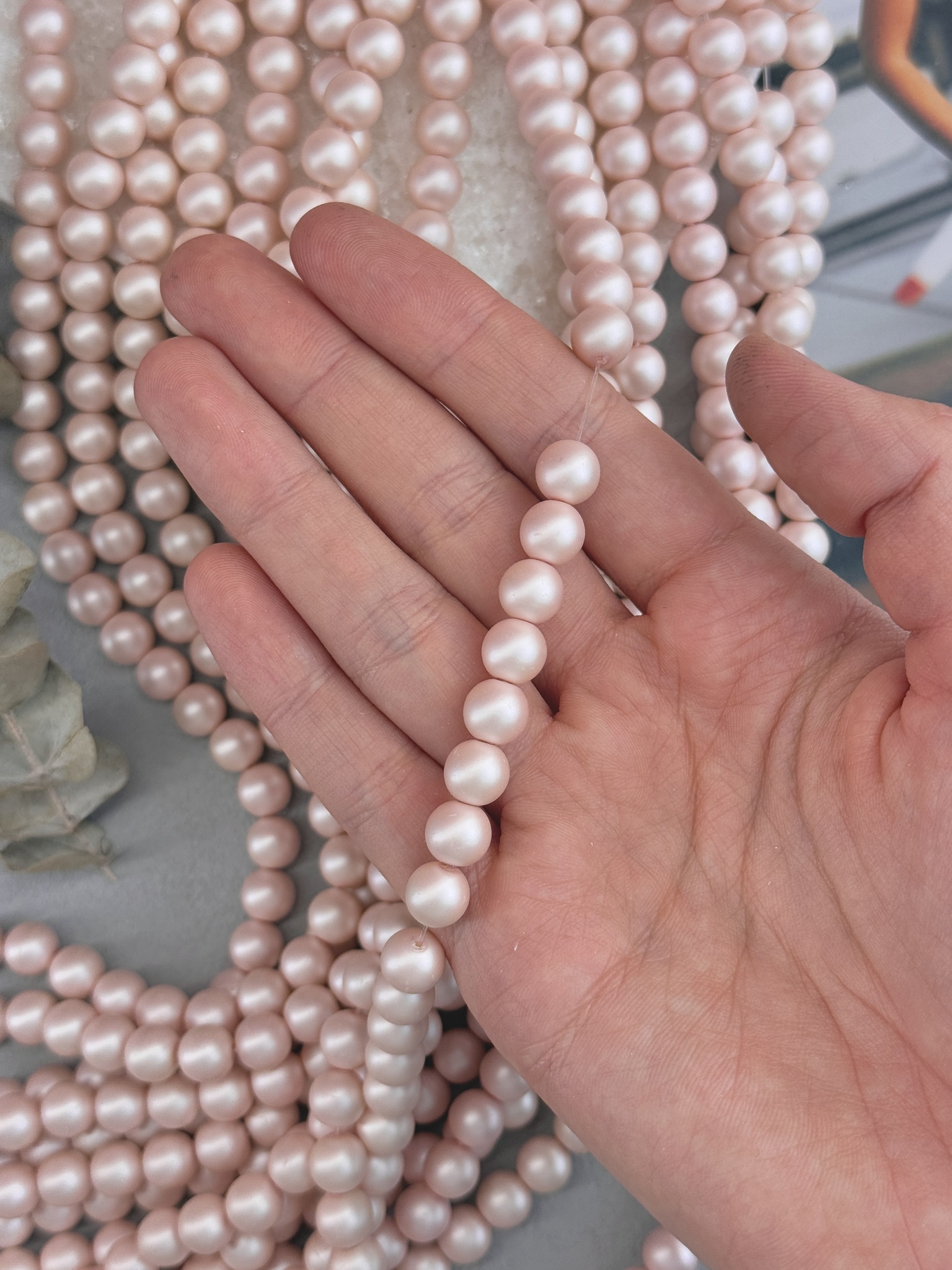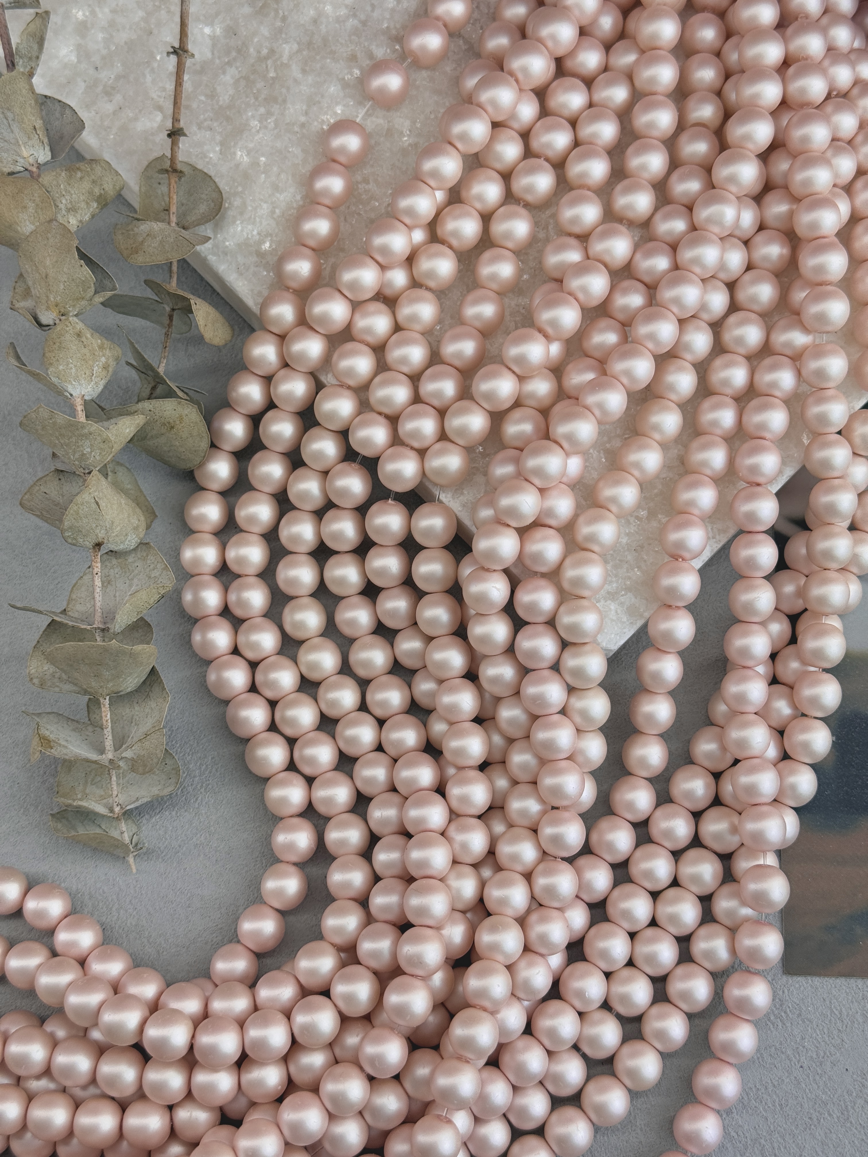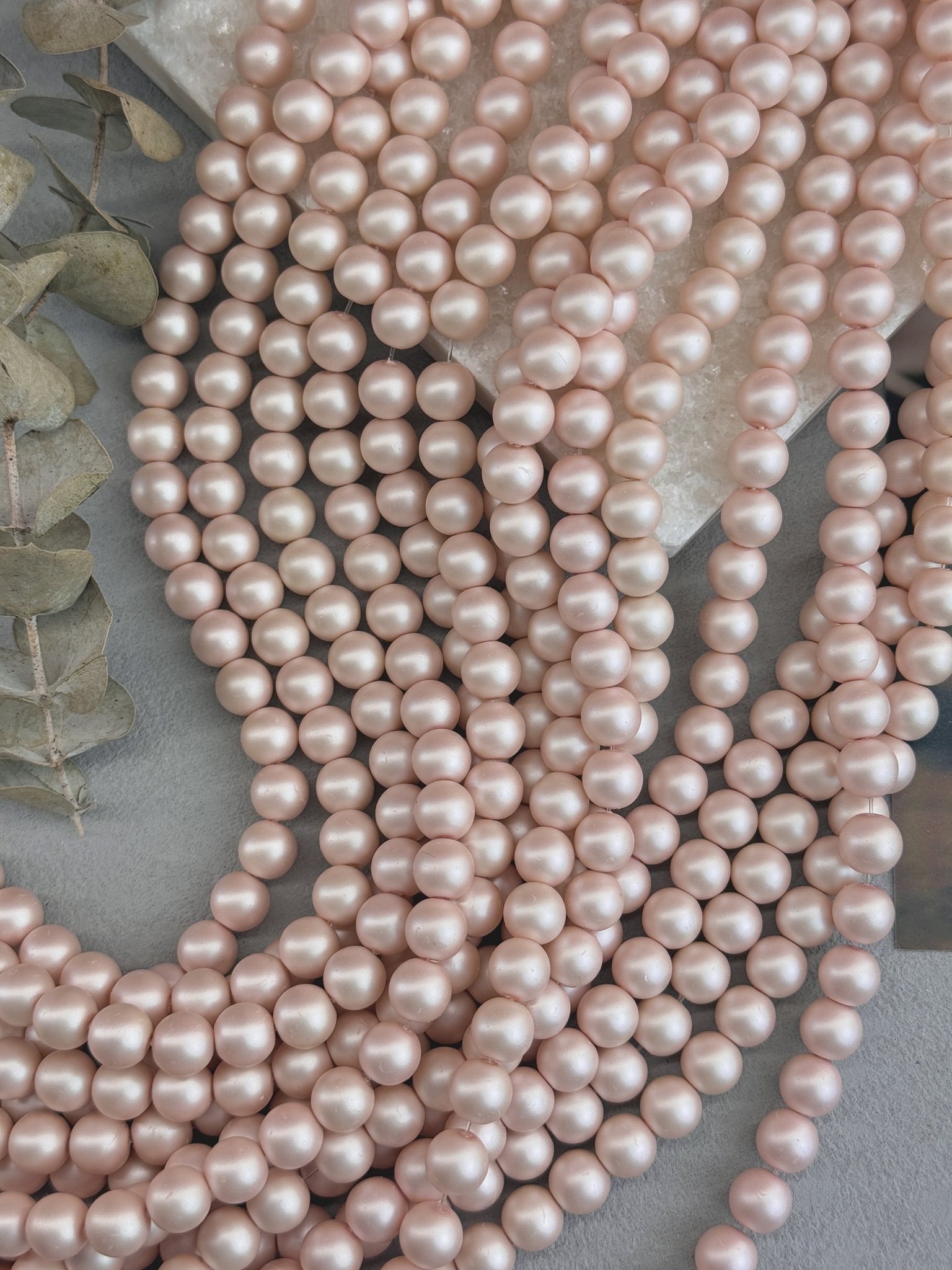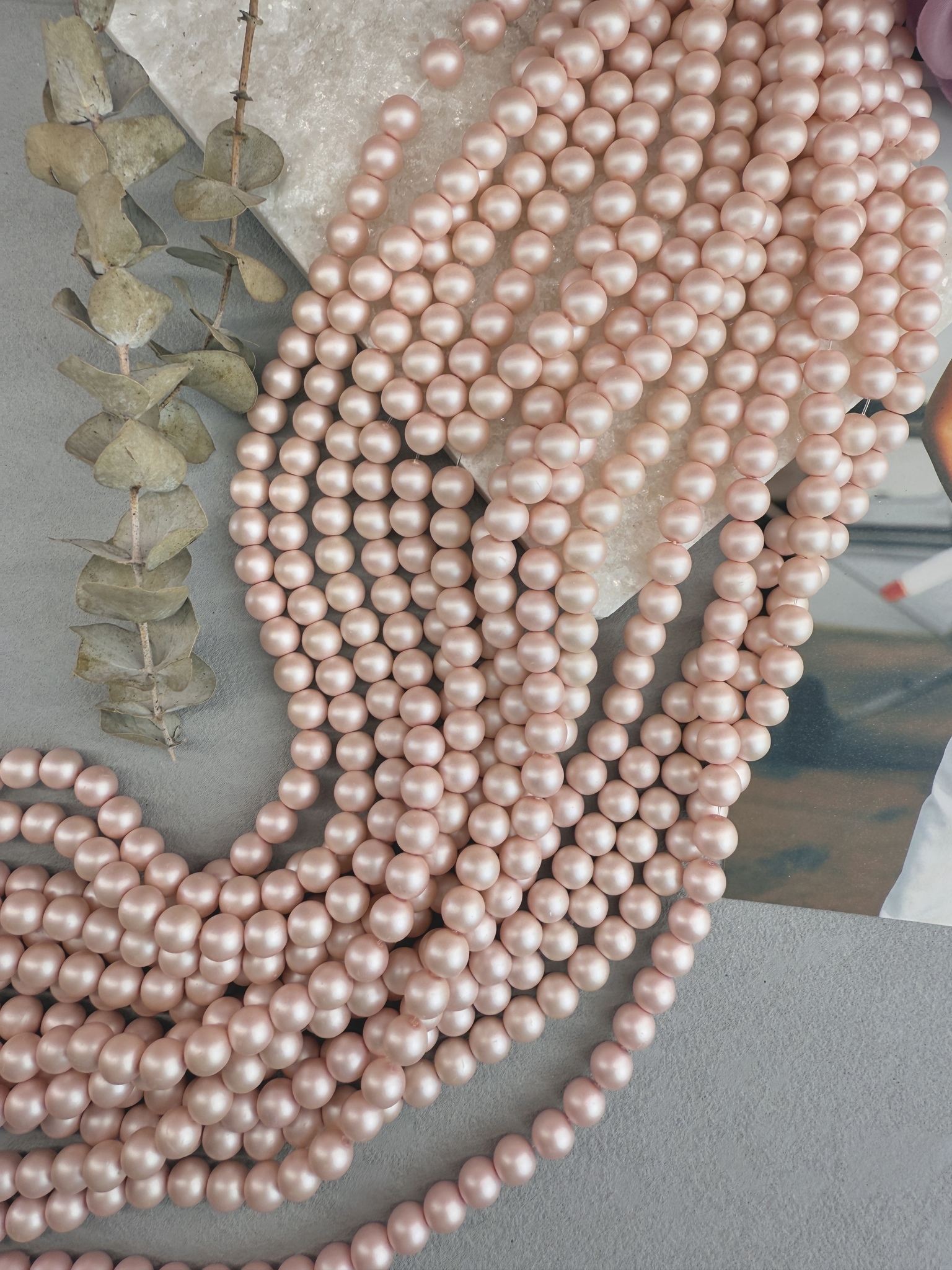 Стеклянный жемчуг с цветным матовым покрытием. Проедется на нити или россыпью. Подходит для вышивки и сборки украшений ручной работы таких как колье, серьги, ободки (не рекомендуем использовать данных жемчуг в браслетах и подвесах, а также других украшениях, где возможно сильное трение изделия). Размер 8 мм.