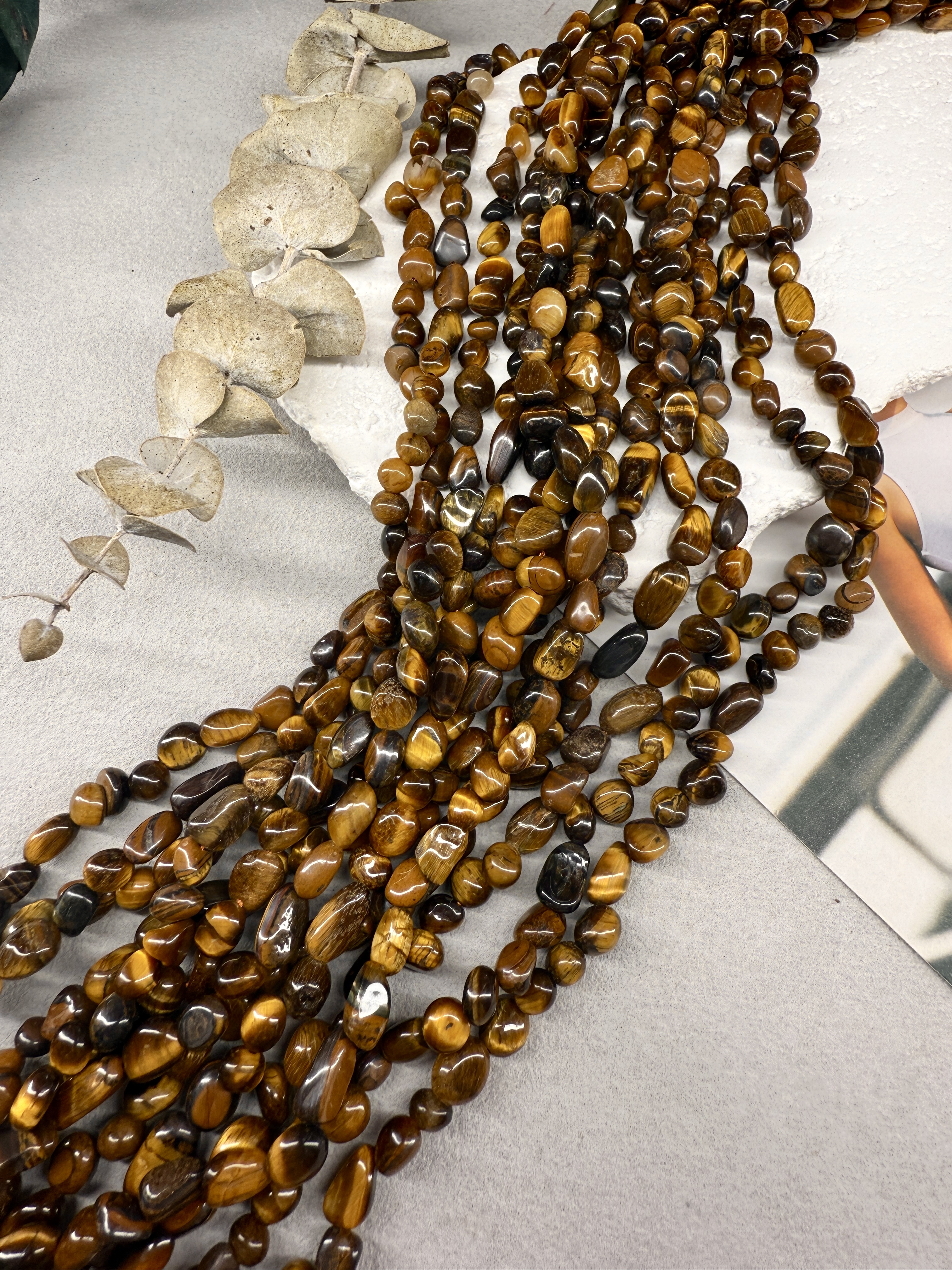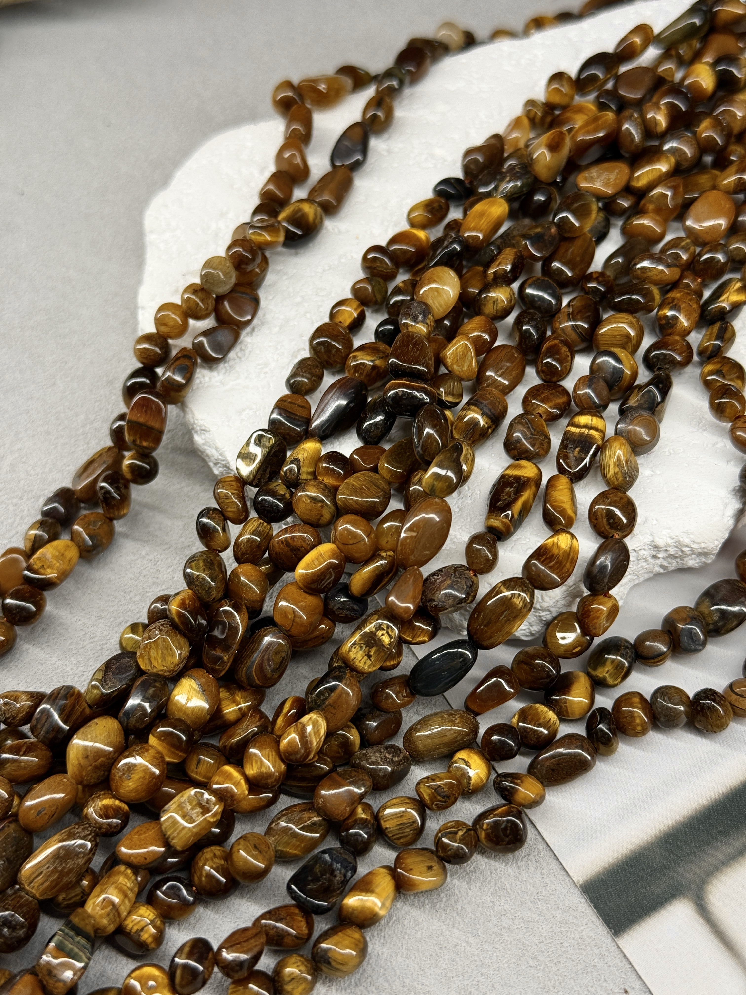 Бусины произвольной формы из тигрового глаза. Размер бусин (примерный) 5-10 мм. Продается россыпью или на нити длиной 39 см (нить иногда рвется и мы меняем фасовку на россыпь). Форма всех бусин разная, неопределенная (галтовка).