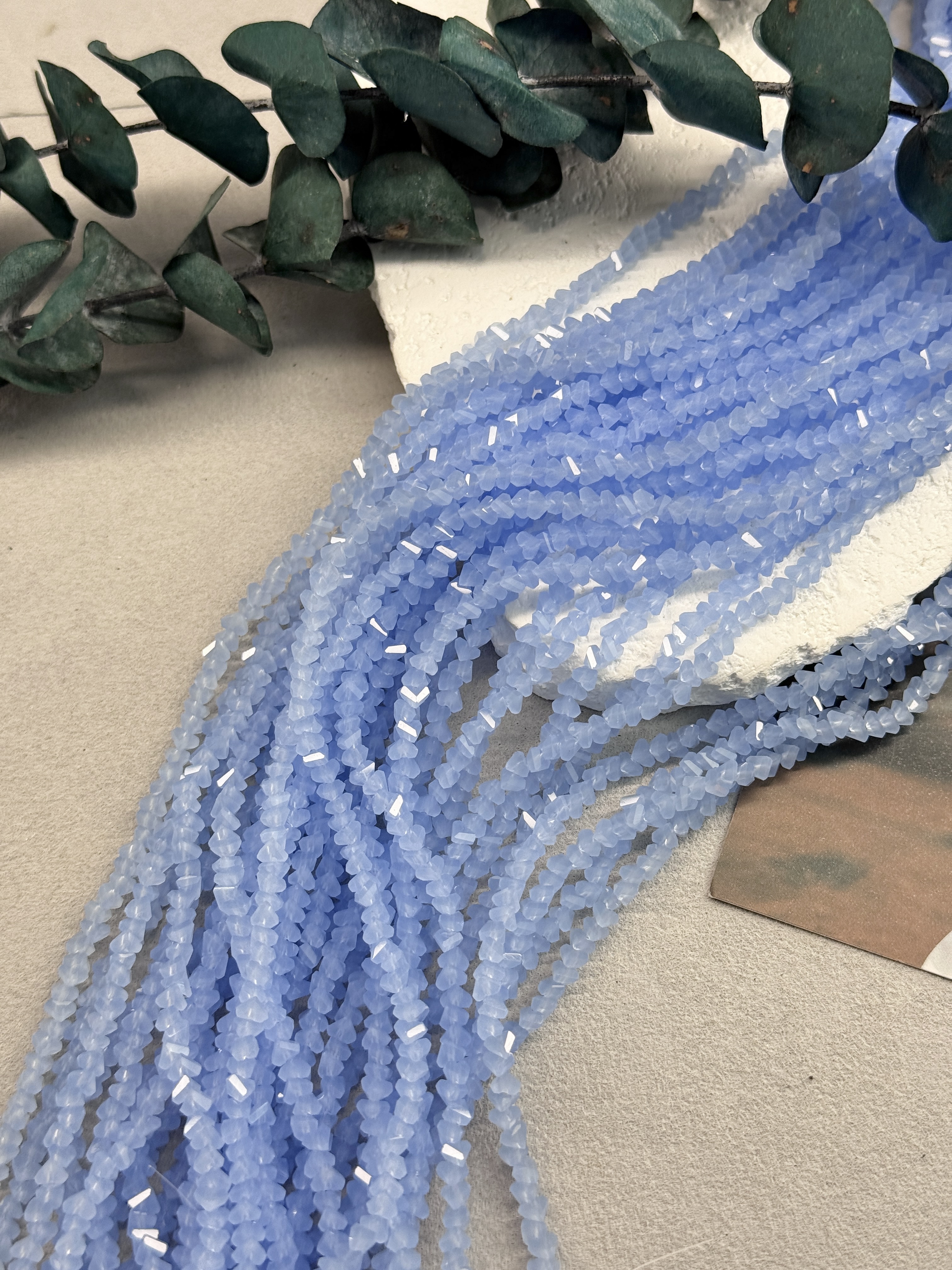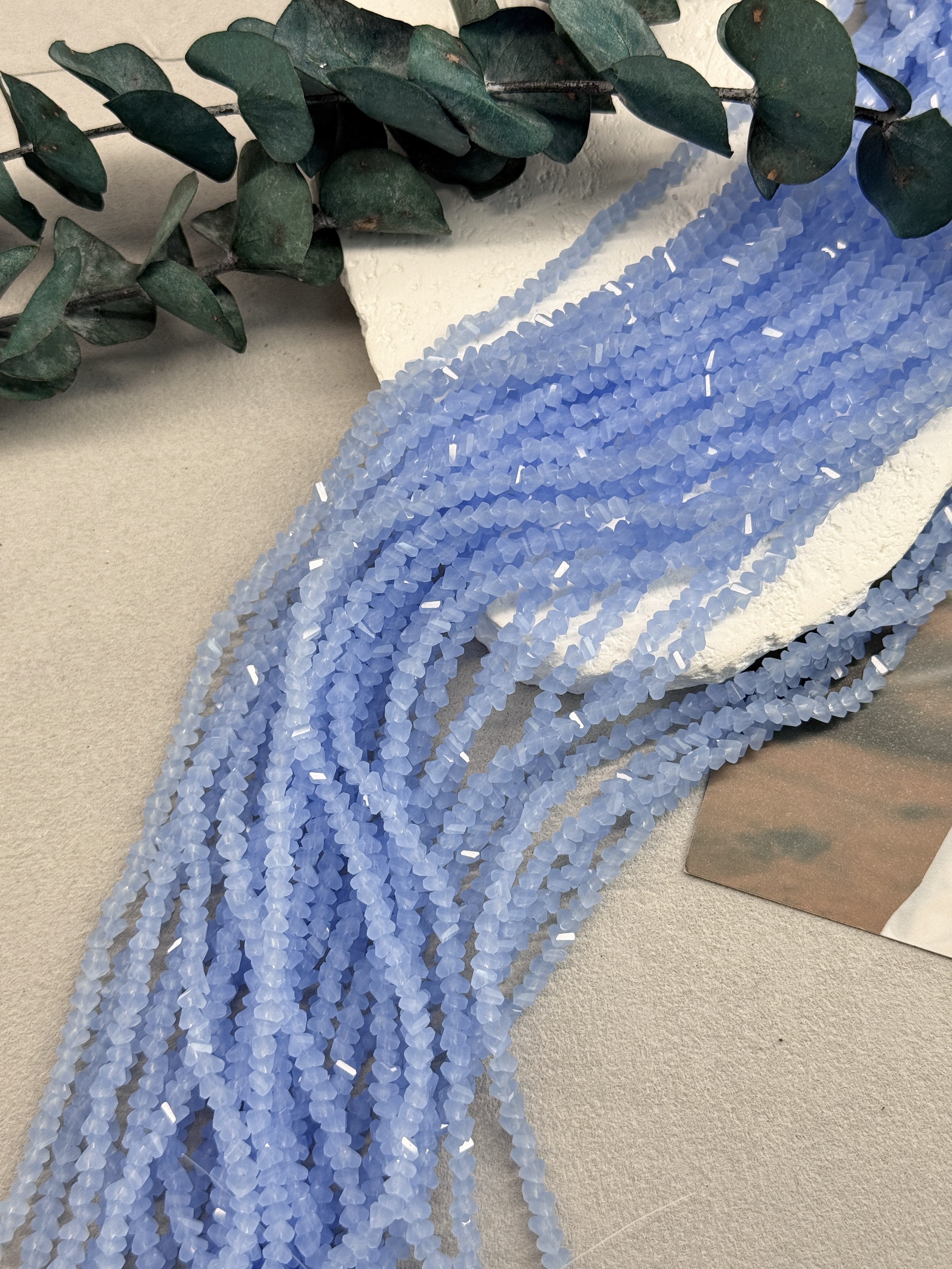 Бусины из хрустального стекла в форме треугольника 4 мм. Идеальны для плетения, вышивки и создания украшений. Не вызывают аллергии, не выцветают и не окрашивают кожу. Идеальный материал для сборки украшений ручной работы. Длина нити около 33 см (может отличаться на пару сантиметров в зависимости от партии). Продается на нити или россыпью (иногда нить рвется при фасовке и мы кладем бусины в пакетик).