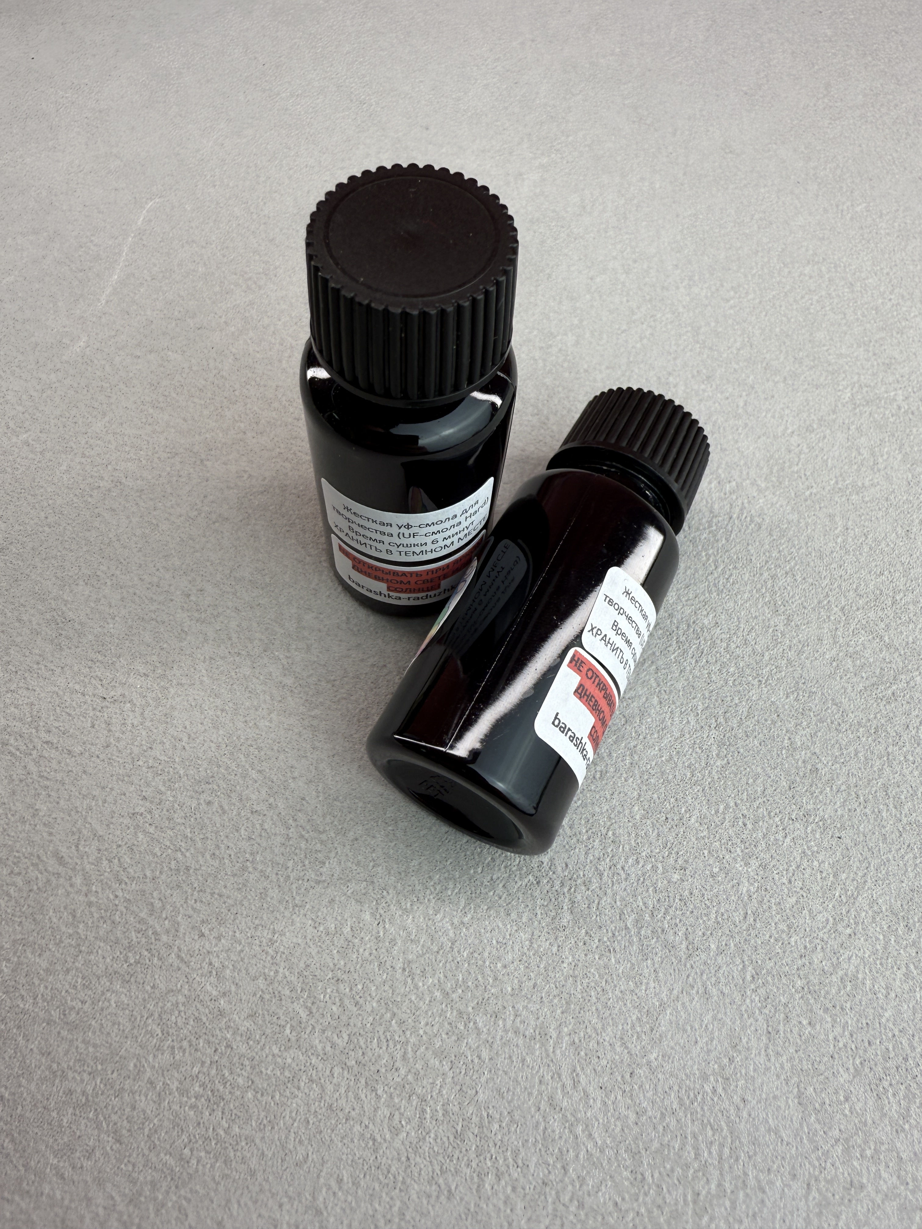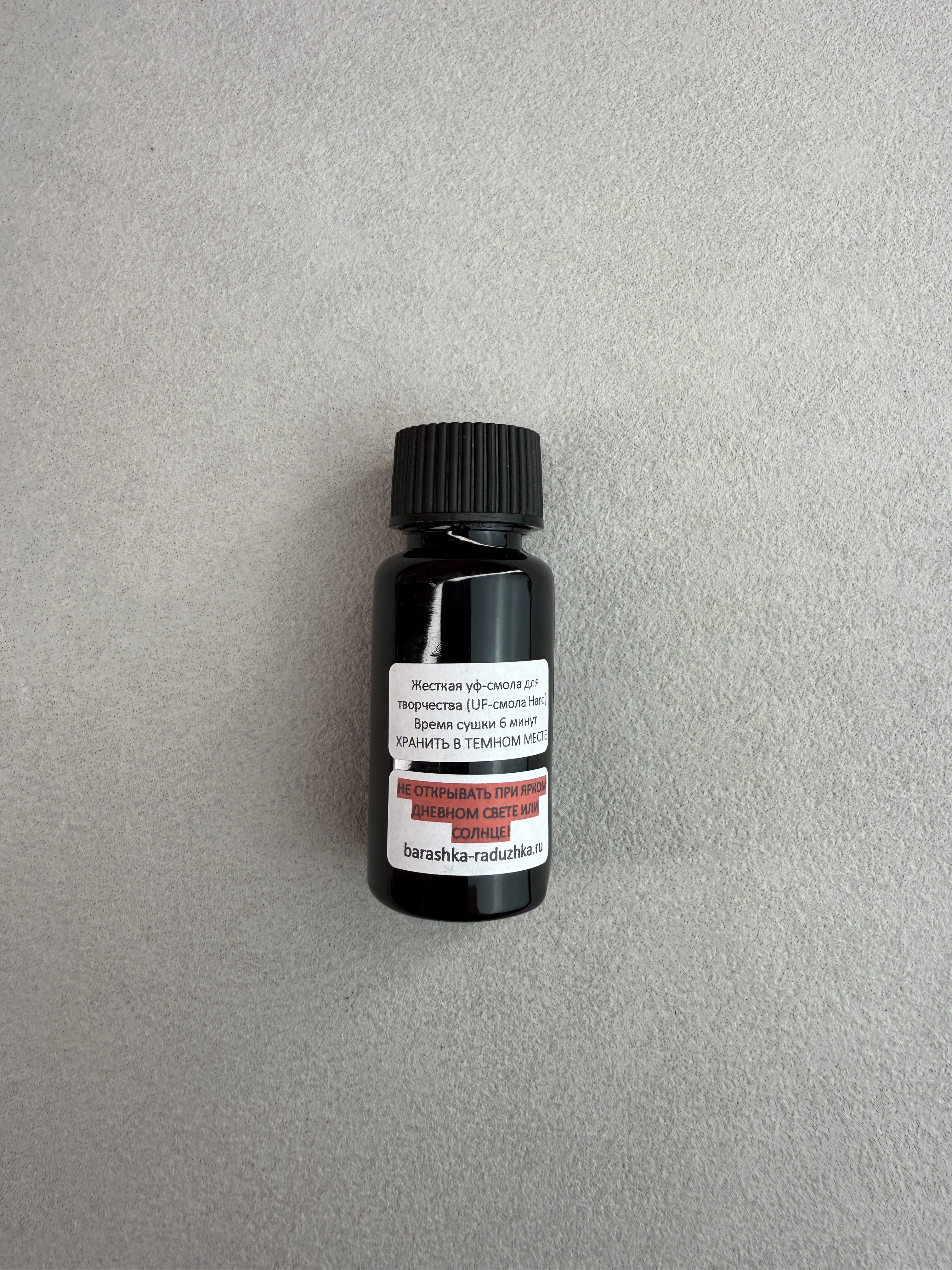 Время сушки 6 минут, тип смолы - жесткая, без липкого слоя. Объем 15 мл (15 грамм), с кисточкой для нанесения. Данного объема хватает в среднем на 6-10 изделий в зависимости от размера. Избегайте попадания солнечного света на кисточку иначе смола затвердеет!